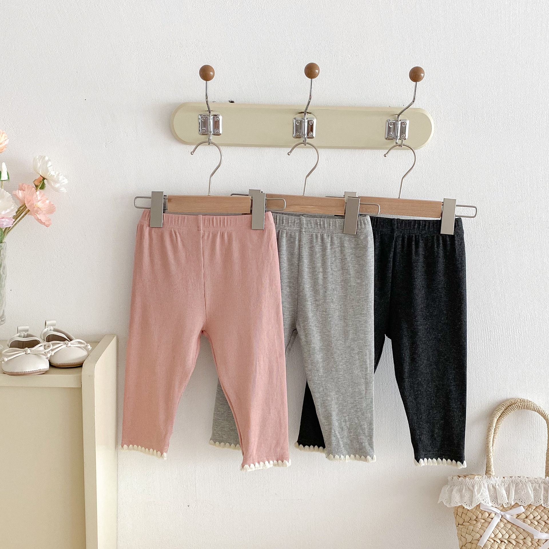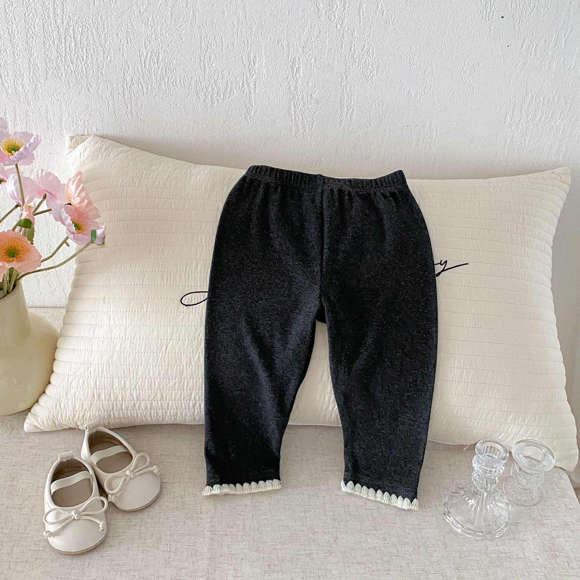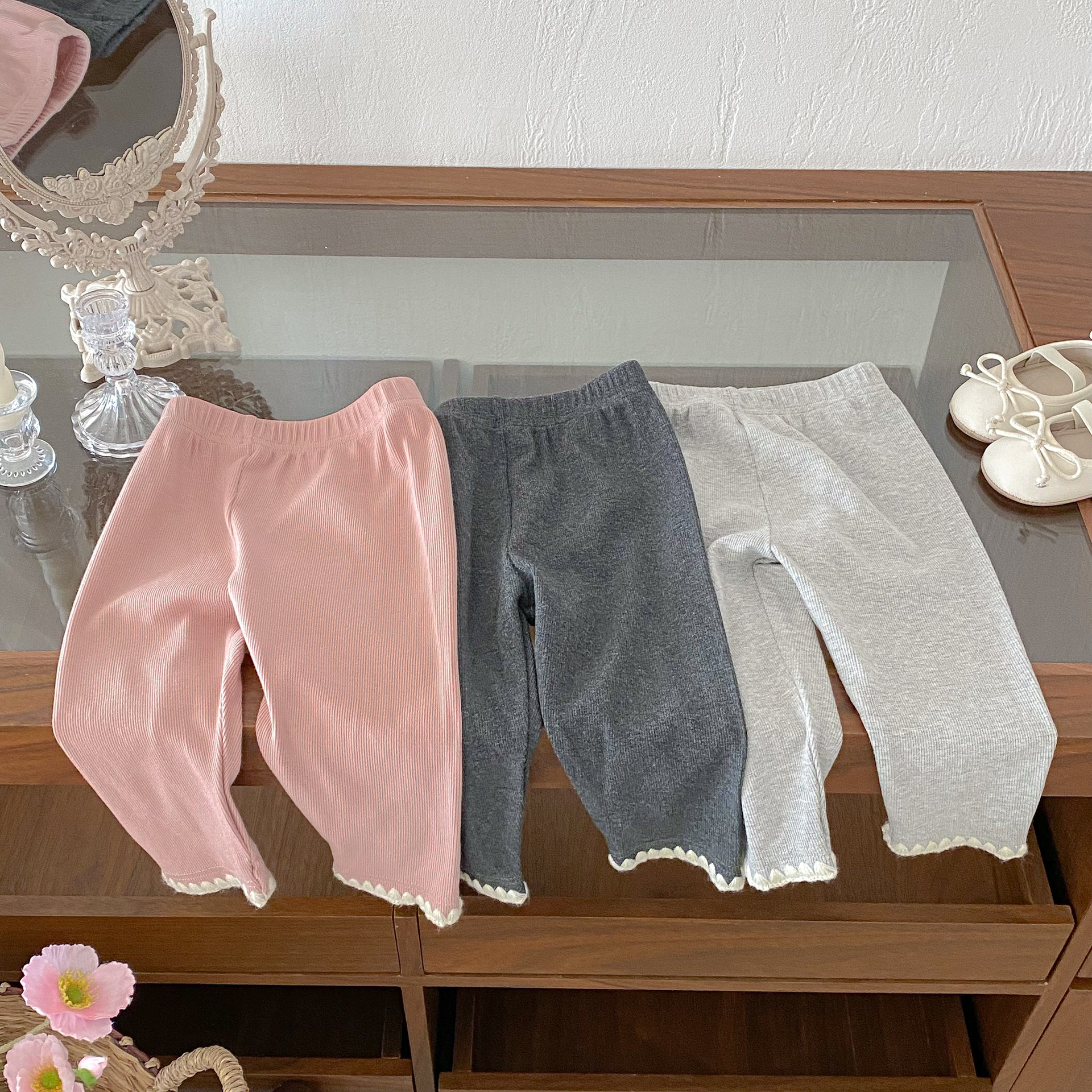 여아 레깅스, 아동용 레이스 니트 단색 레깅스, 여아 아우터 바지, 봄, 가을 아동복 레깅스스토어 가기