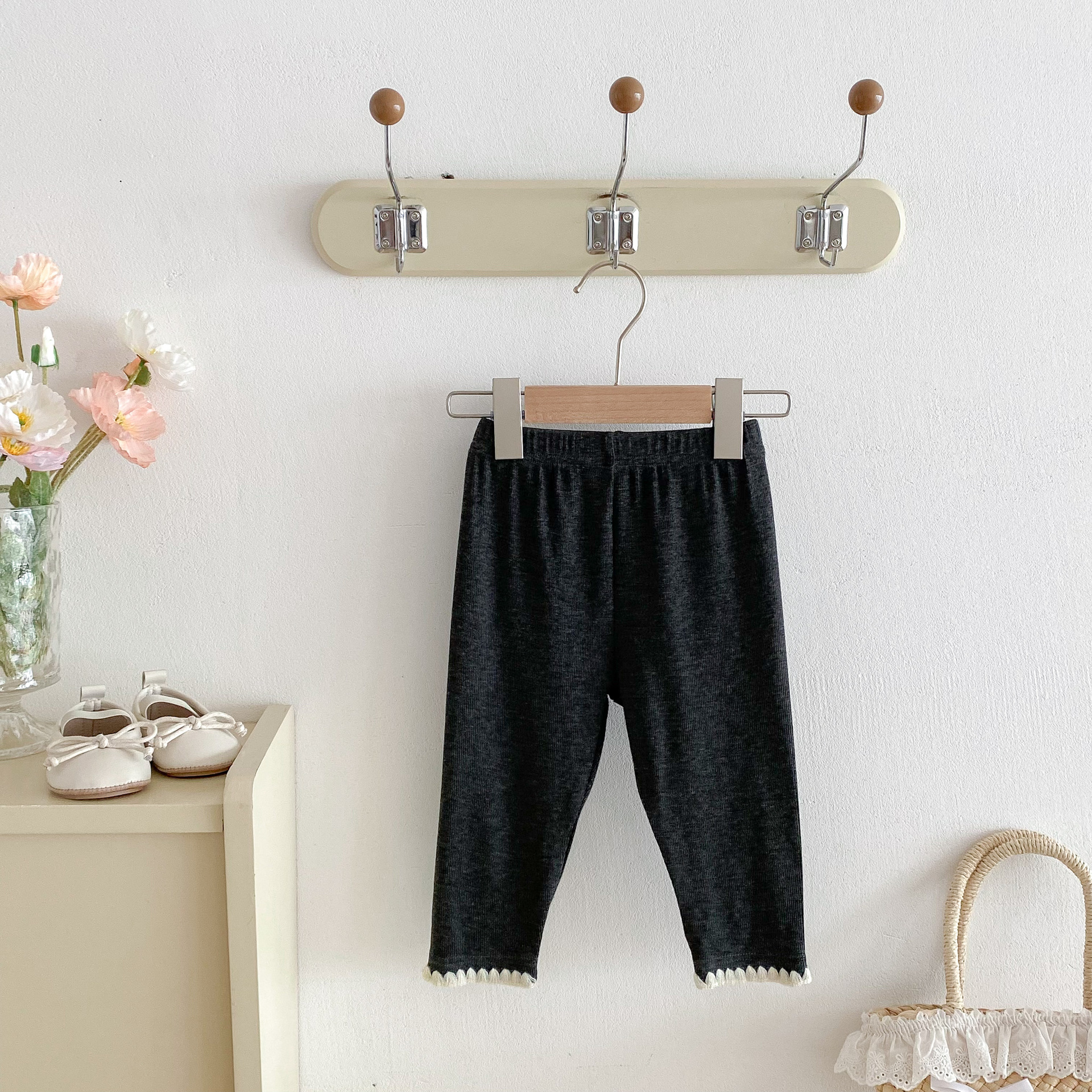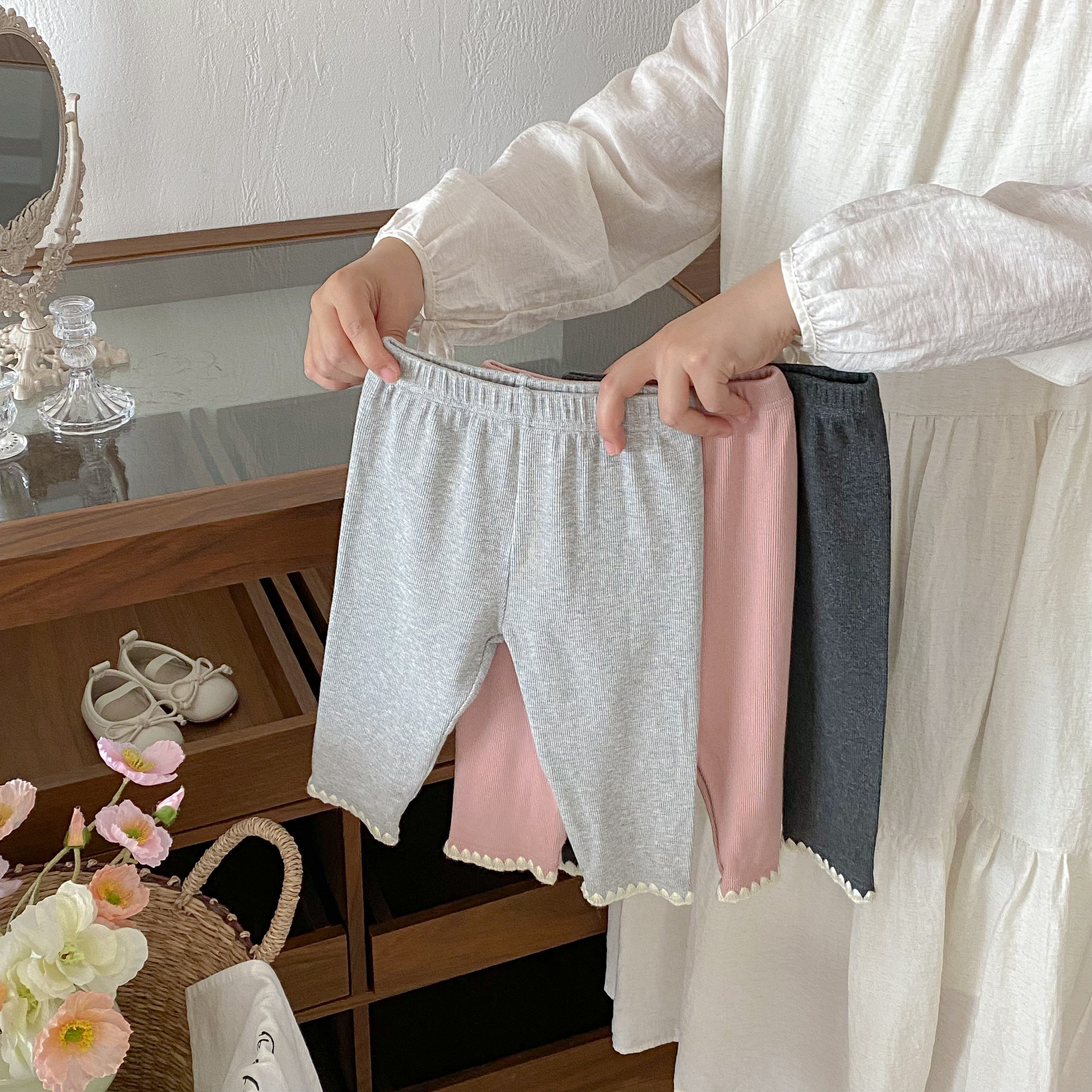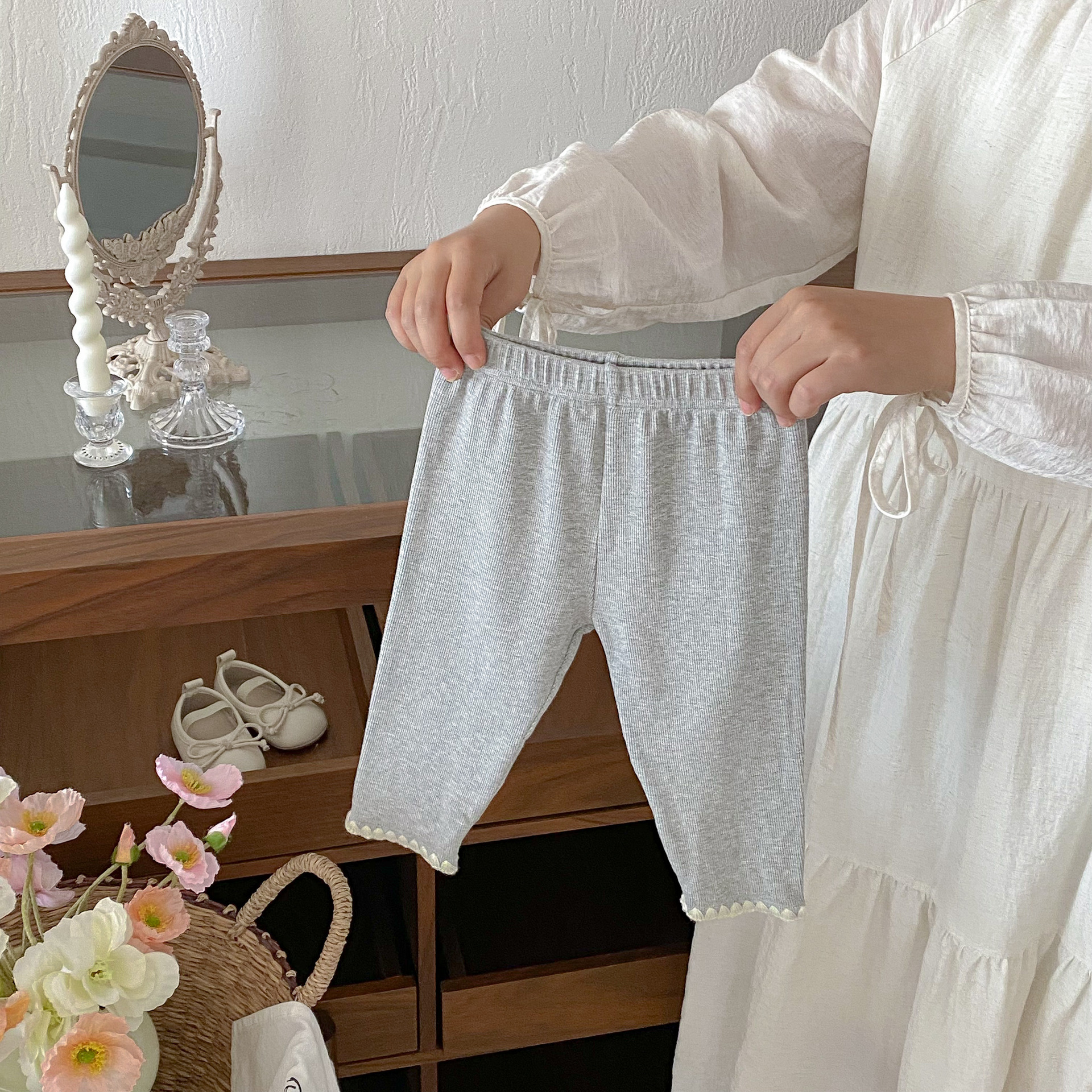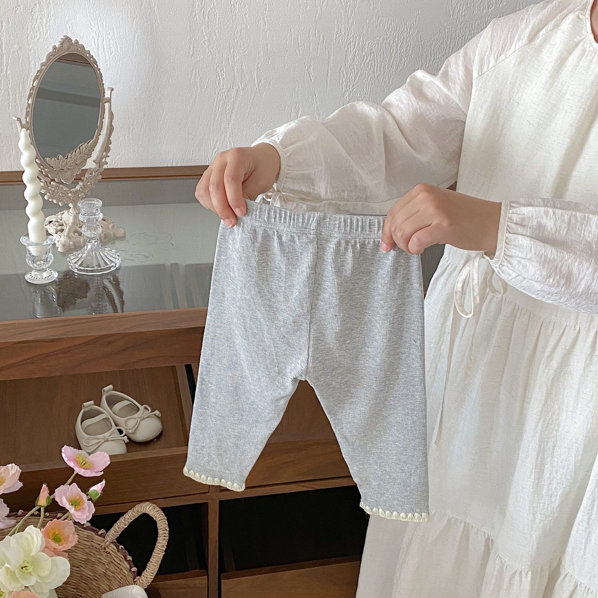여아 레깅스, 아동용 레이스 니트 단색 레깅스, 여아 아우터 바지, 봄, 가을 아동복 레깅스스토어 가기