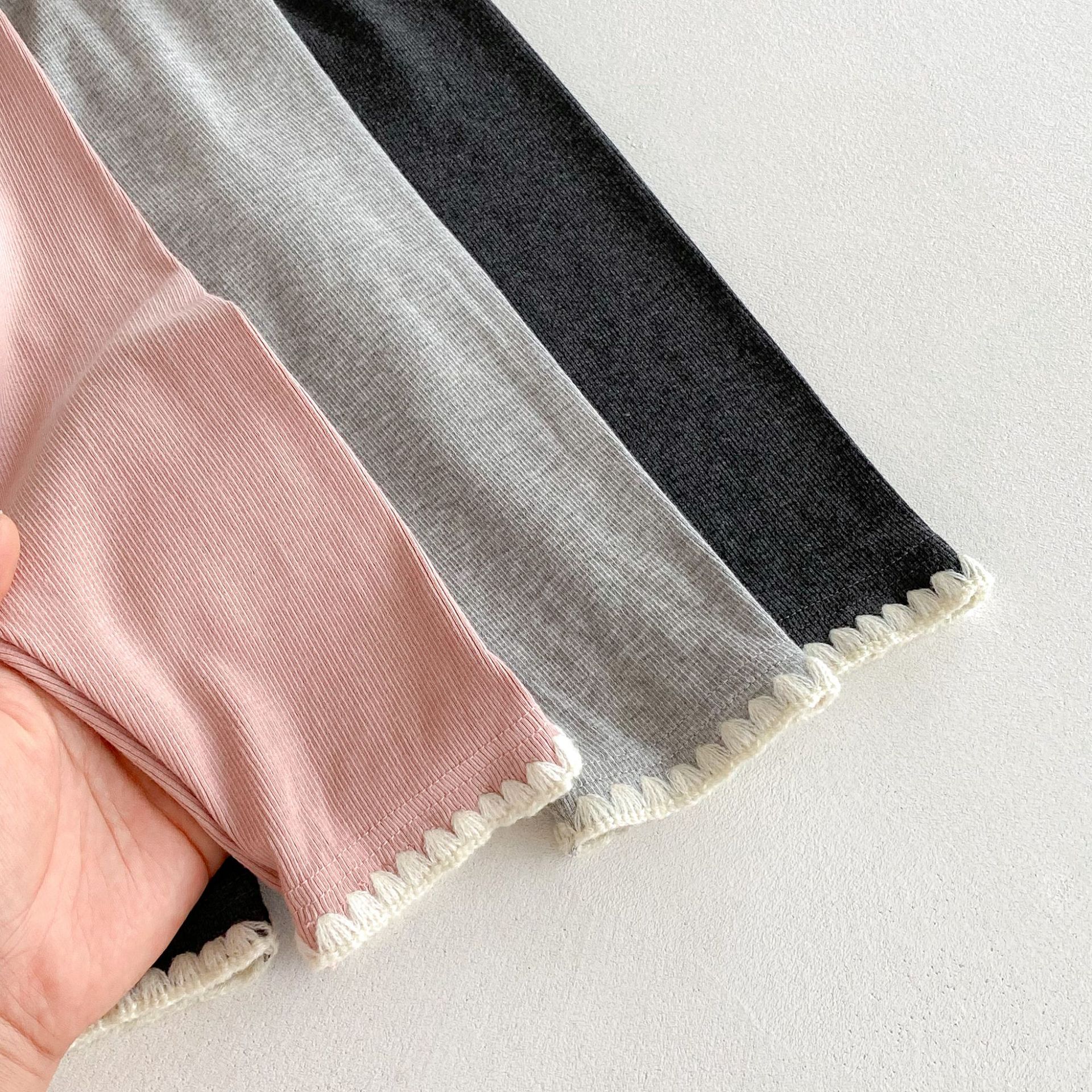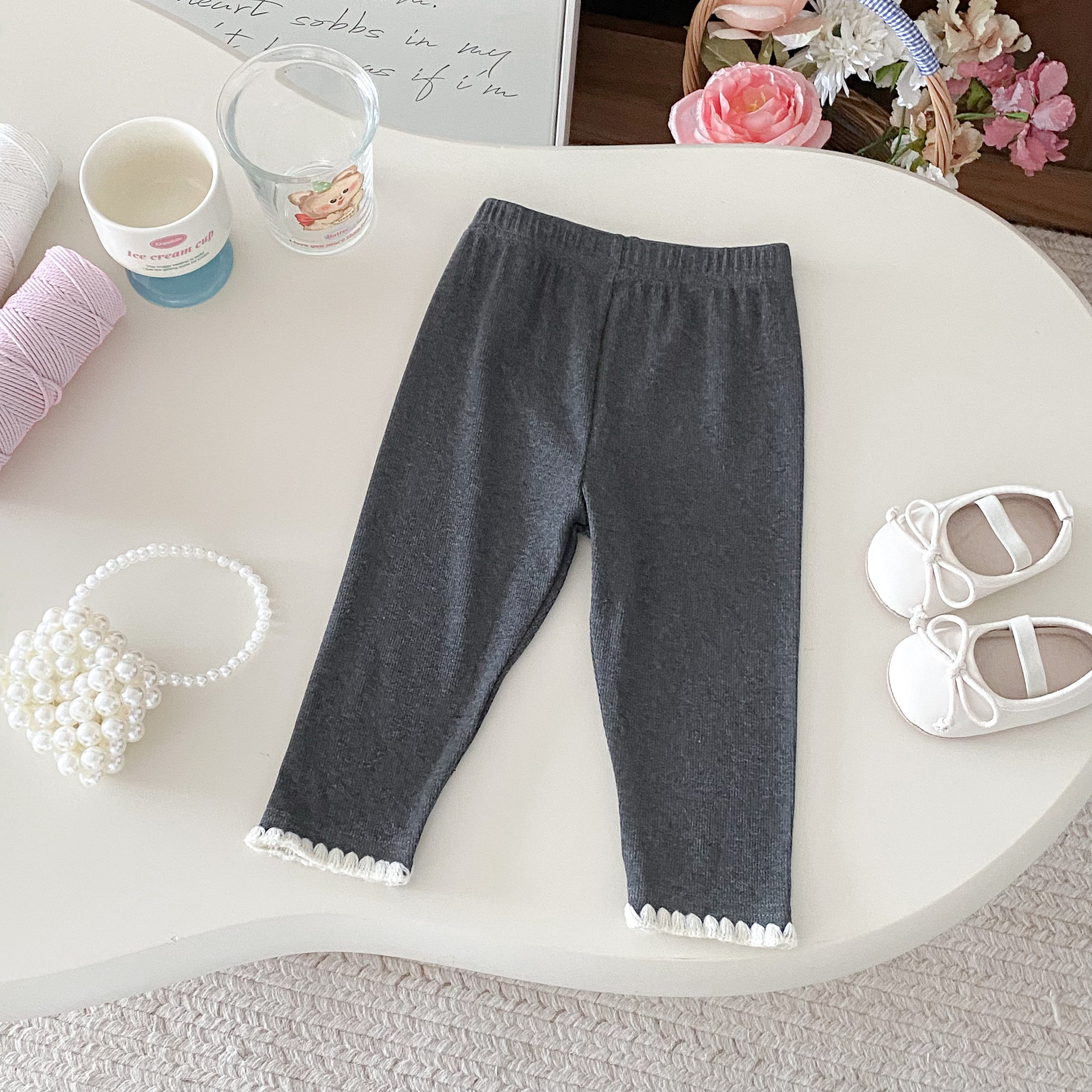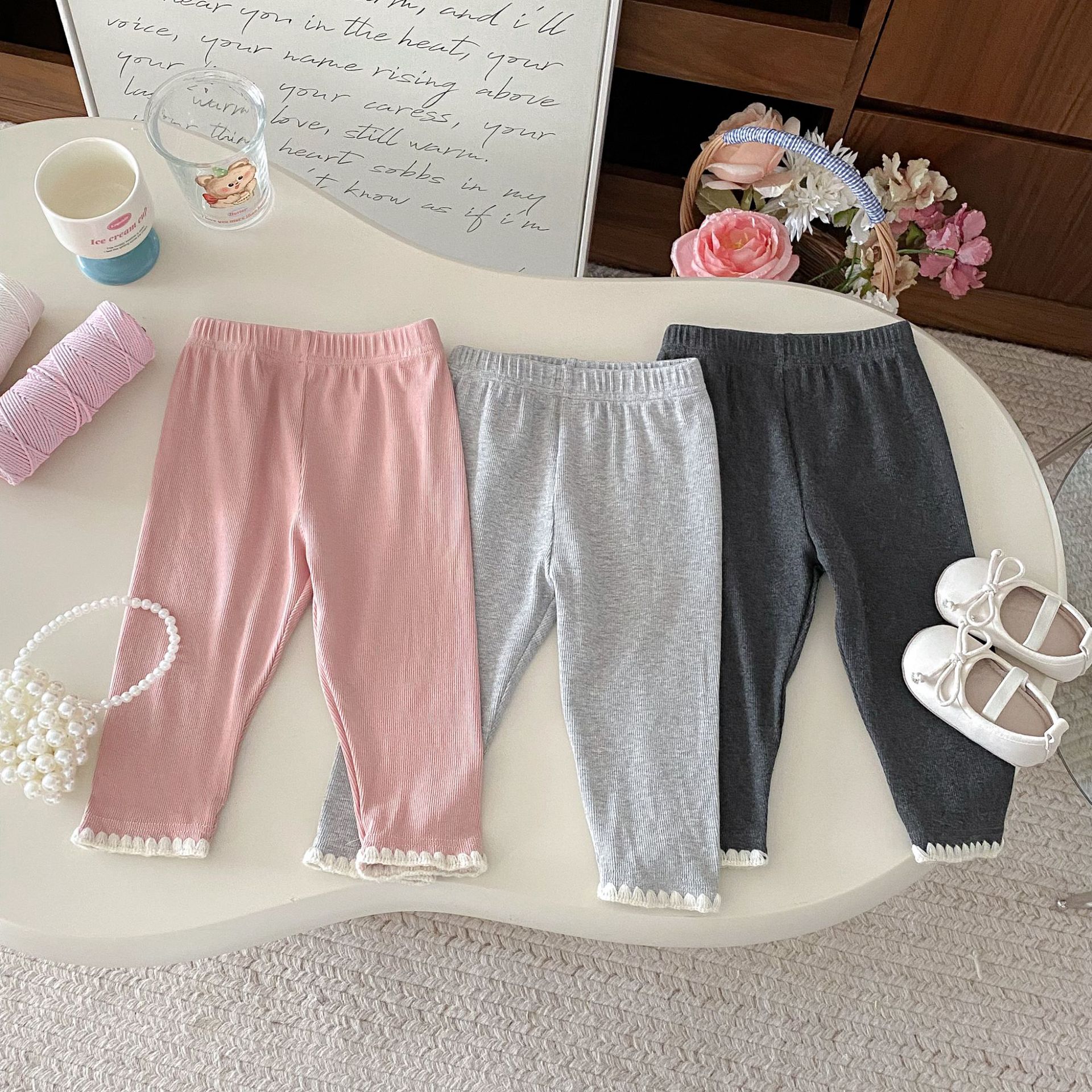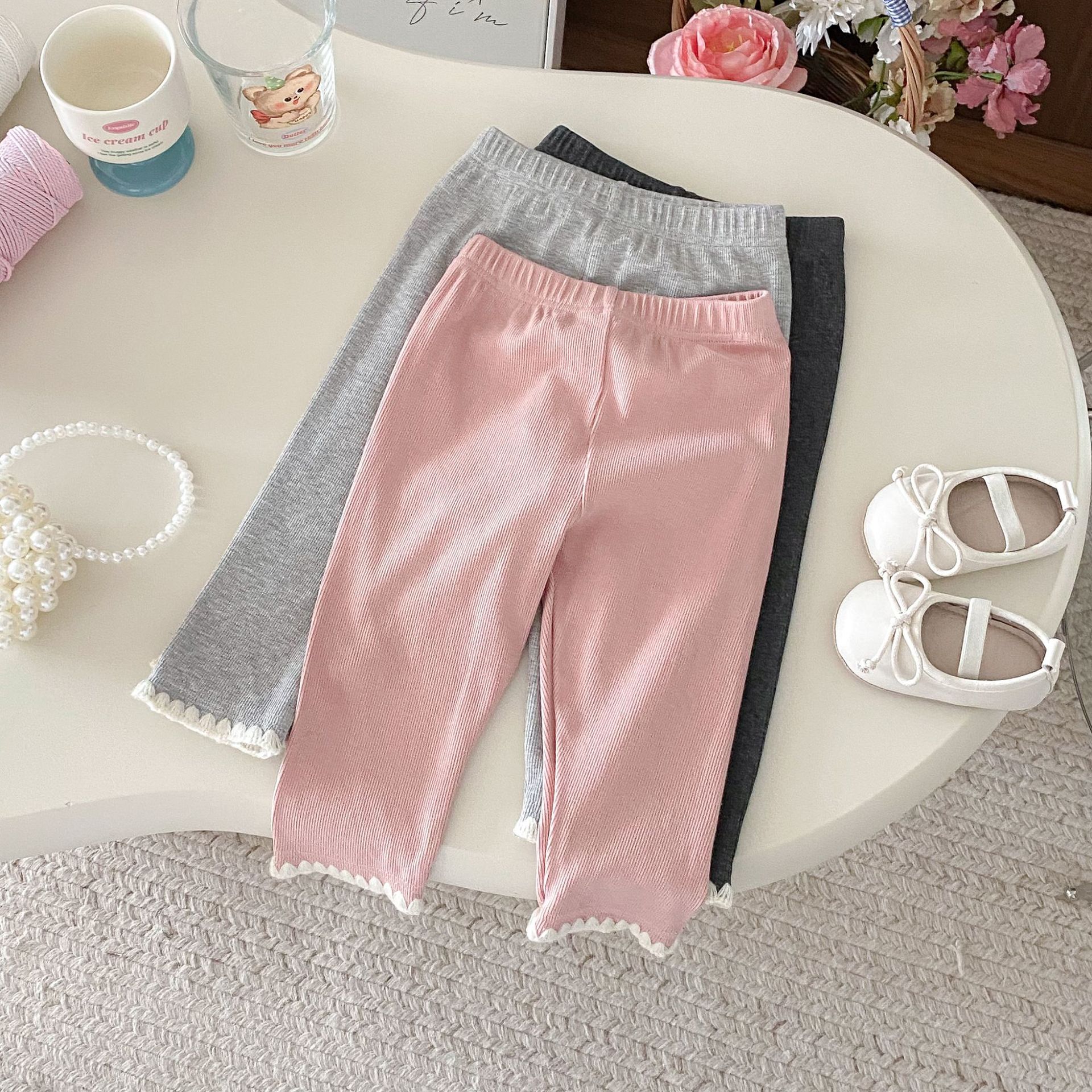 여아 레깅스, 아동용 레이스 니트 단색 레깅스, 여아 아우터 바지, 봄, 가을 아동복 레깅스