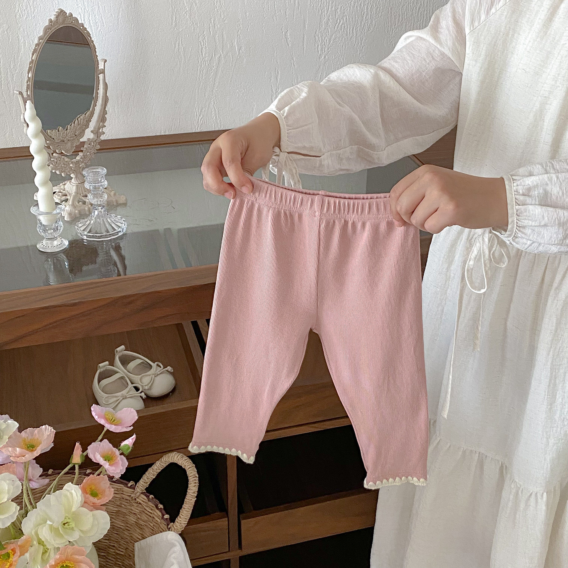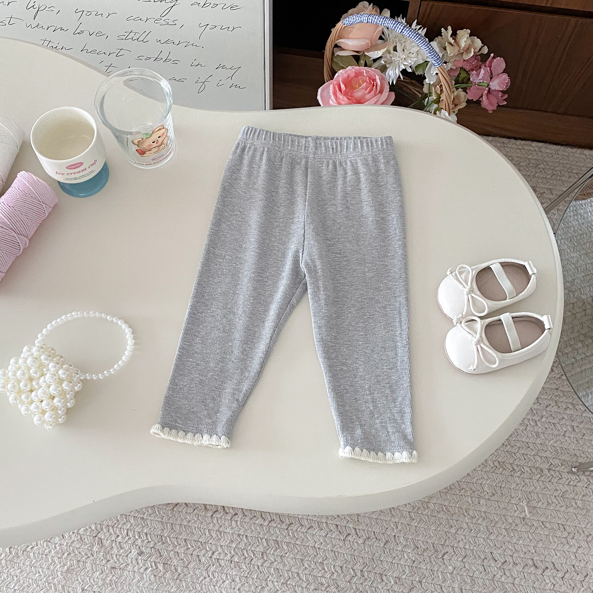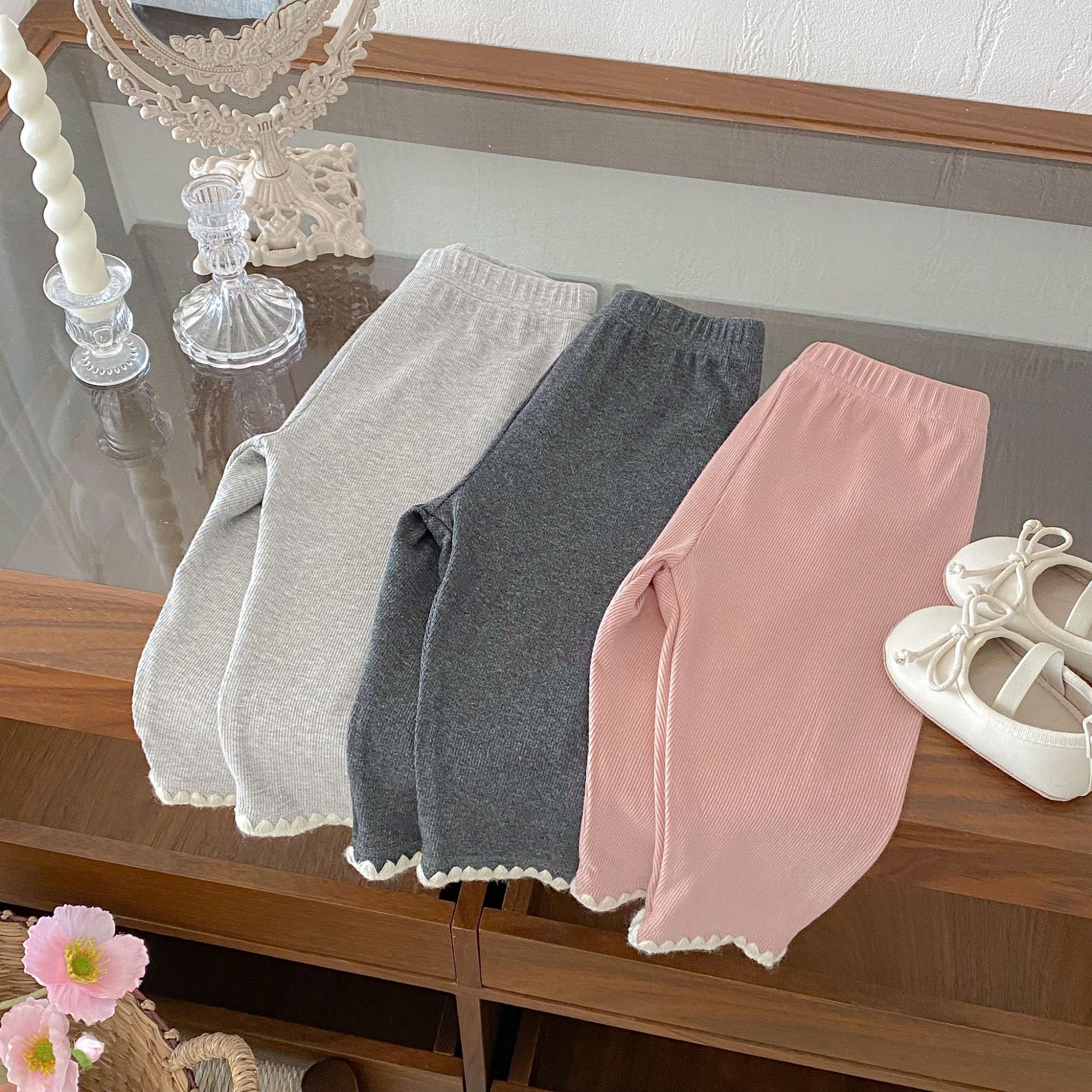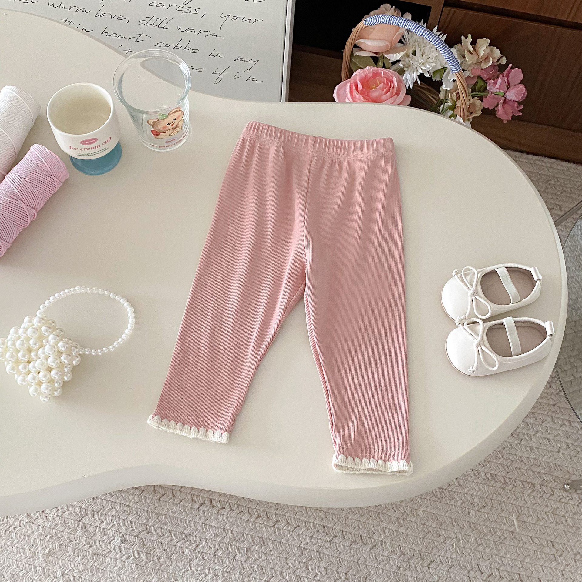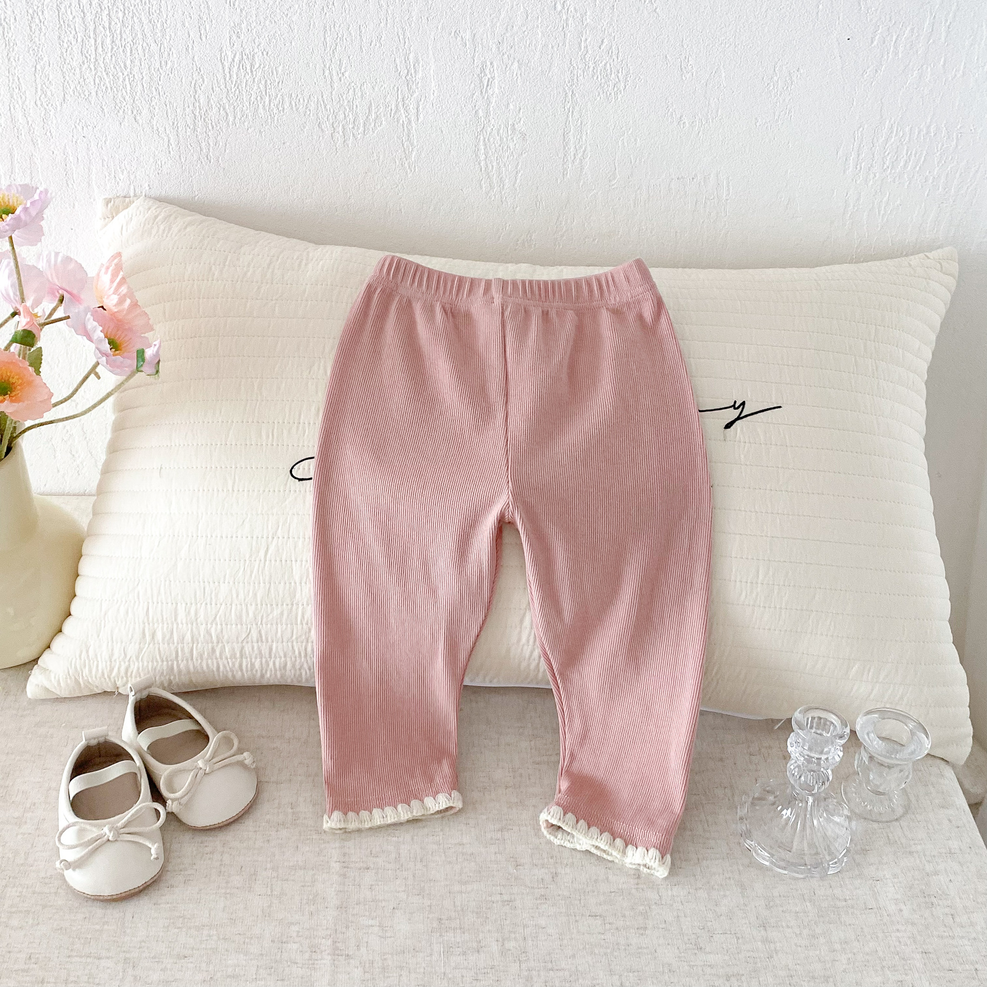 여아 레깅스, 아동용 레이스 니트 단색 레깅스, 여아 아우터 바지, 봄, 가을 아동복 레깅스