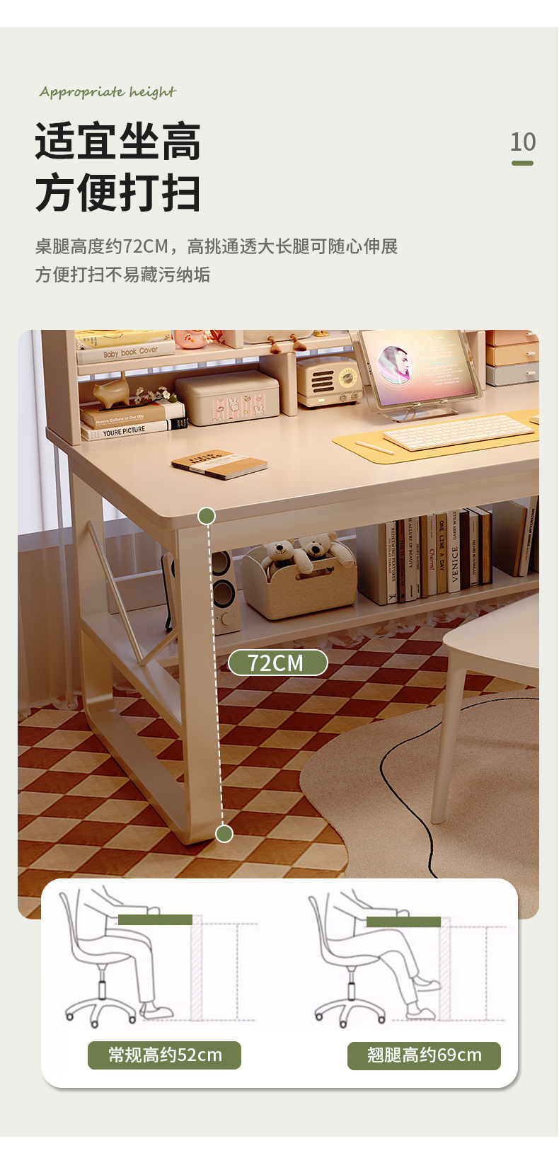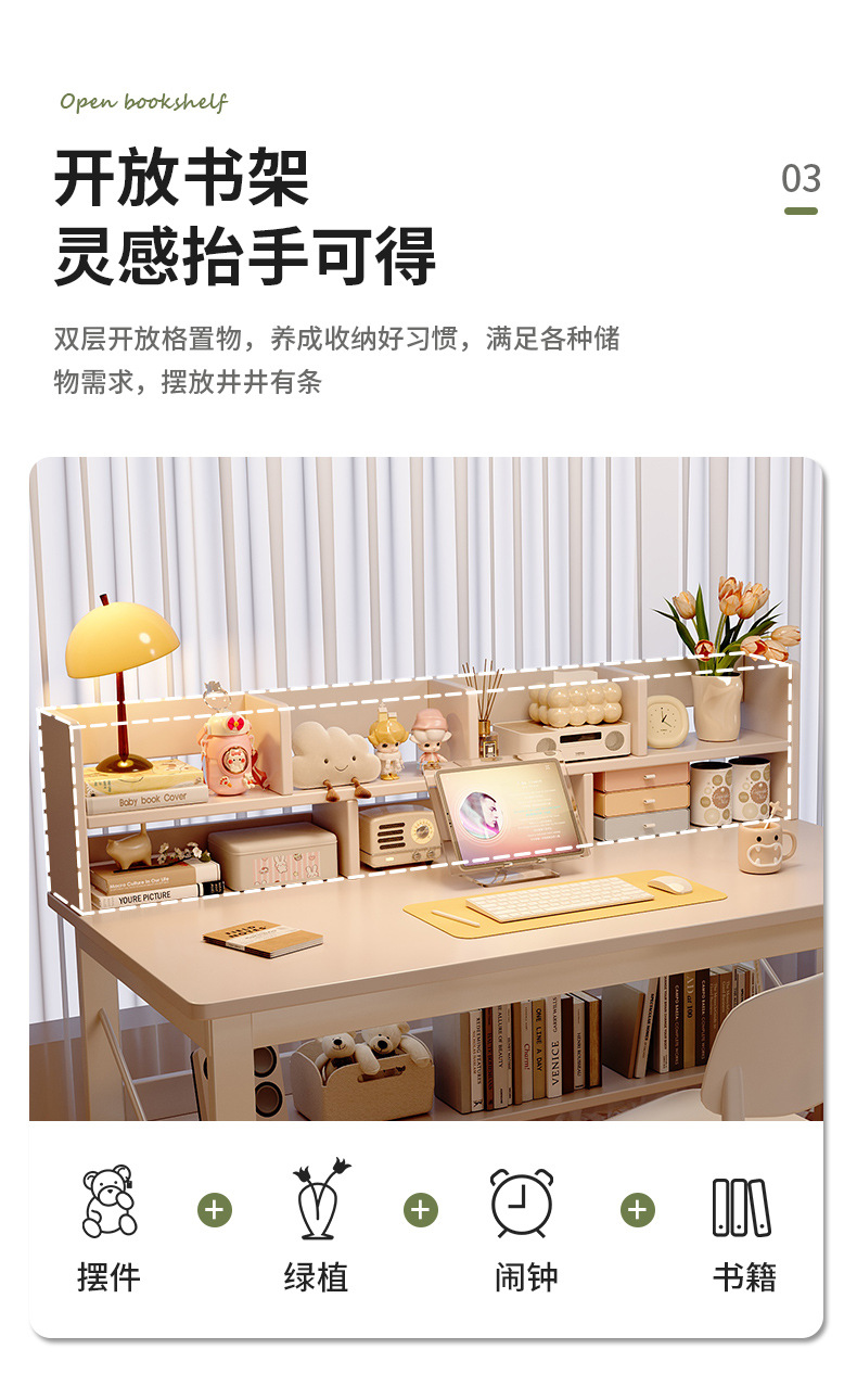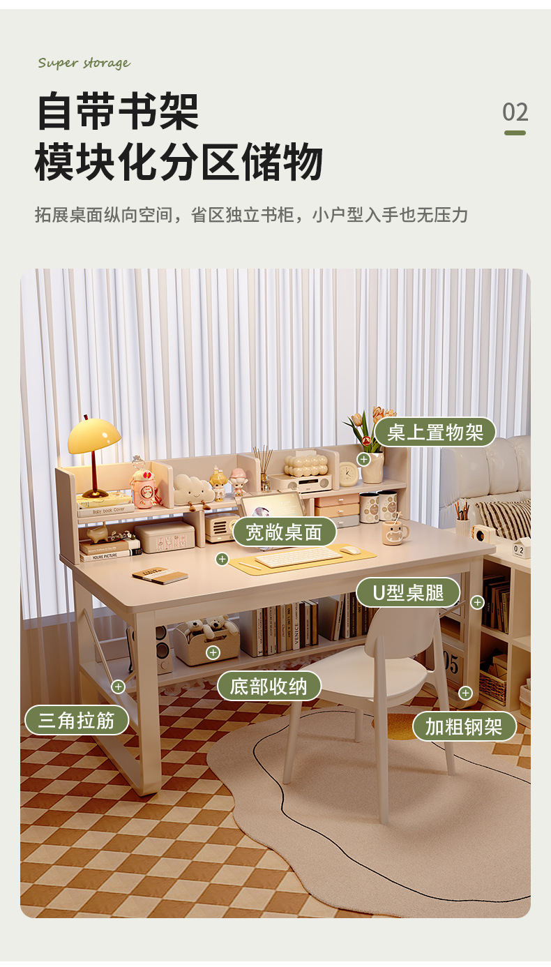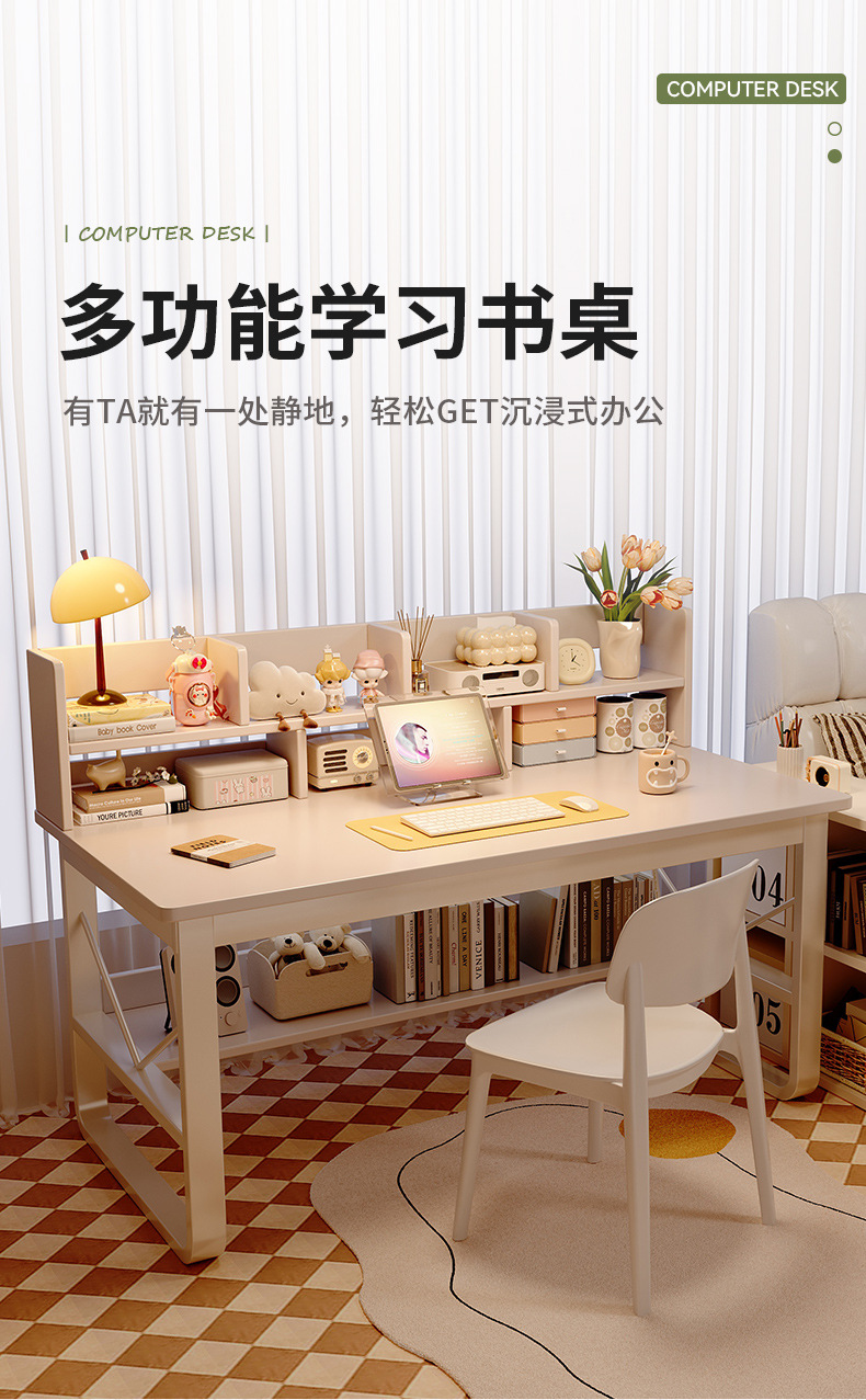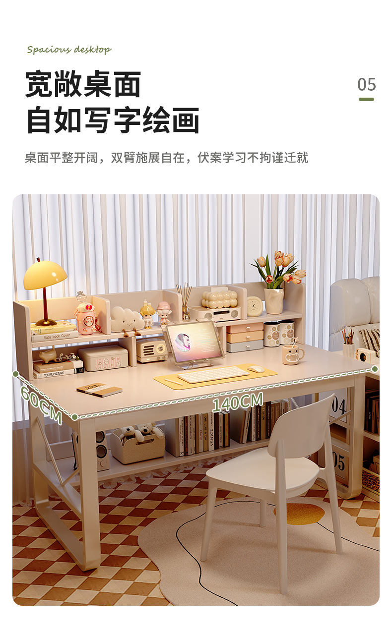 단단한 나무 책상과 책장 일체형 학생 침실 학습 책상 임대 주택 간단한 긴 사무실 컴퓨터 책상스토어 가기