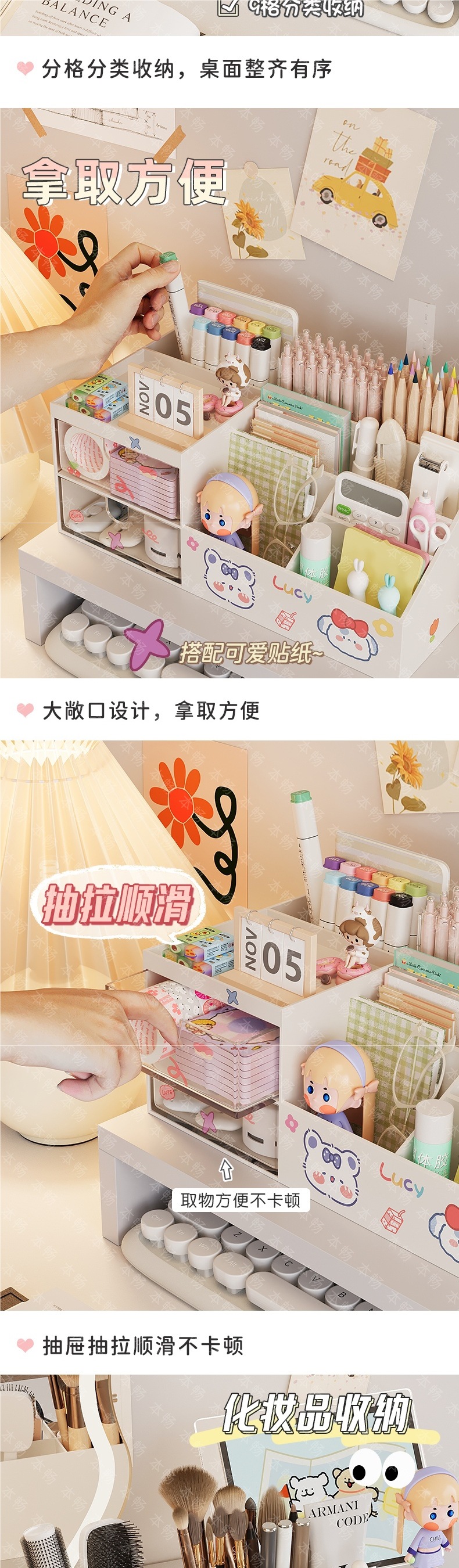 책상 수납함 서랍형 펜홀더 문구 정리 펜홀더 다층 수납선반 사무실 침실 화장품 어린이스토어 가기