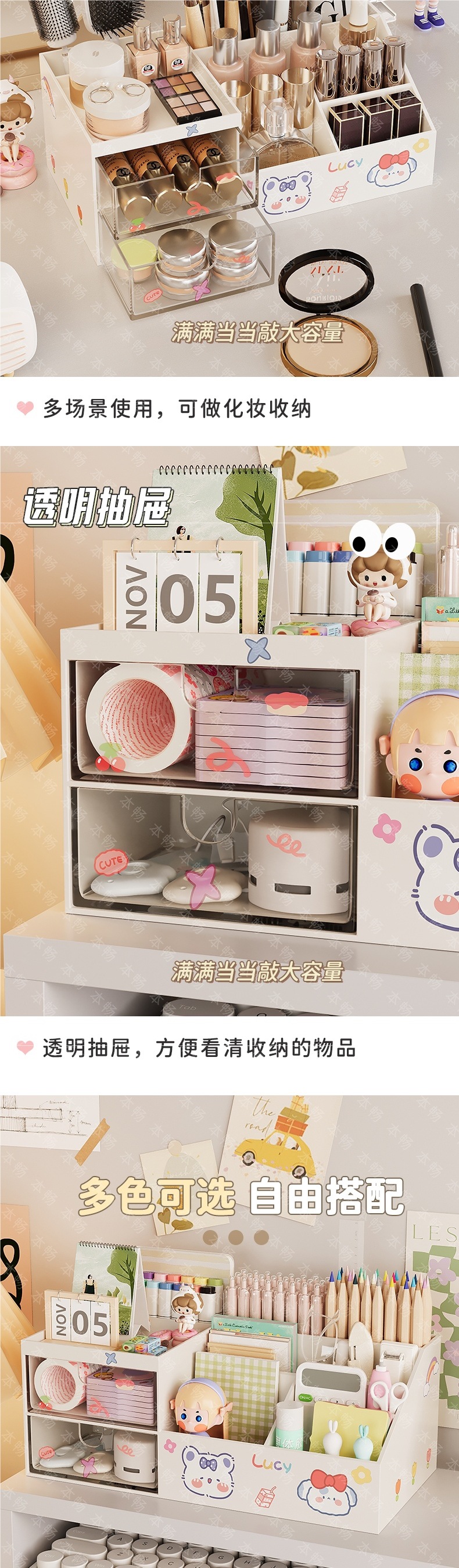 책상 수납함 서랍형 펜홀더 문구 정리 펜홀더 다층 수납선반 사무실 침실 화장품 어린이