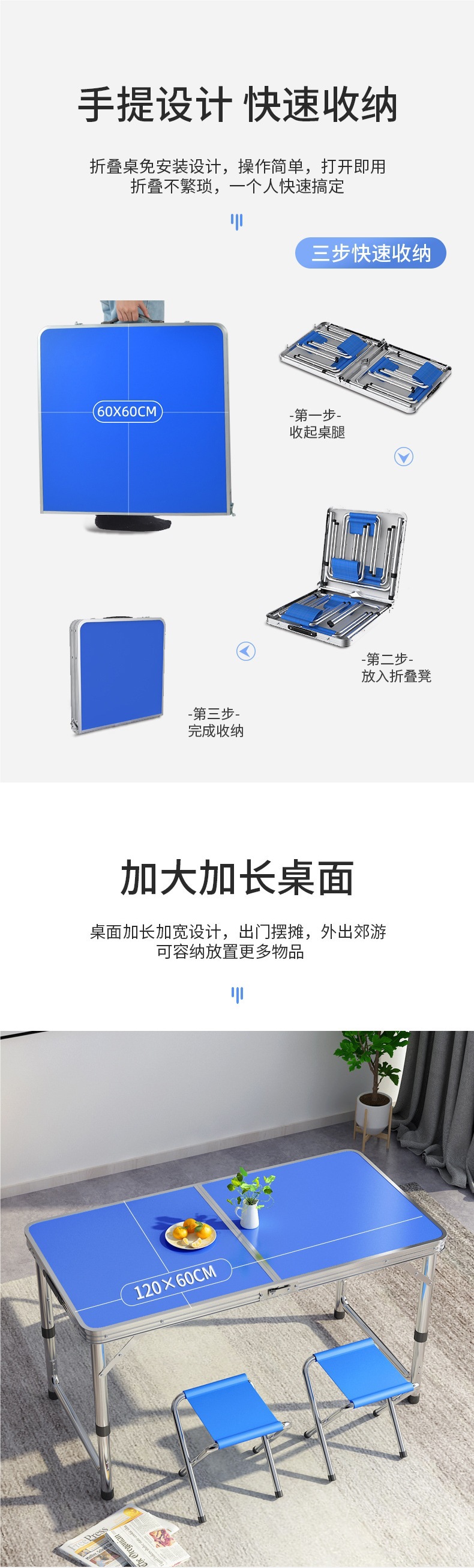 • 업그레이드된 사각 튜브 블루 싱글 테이블(+무료 천 스툴 2개+높이 조절 가능)+