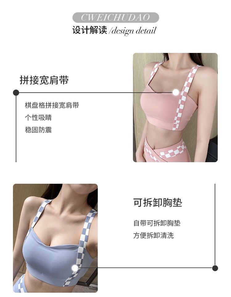 투피스 컬러 매칭 고강도 러닝 피트니스 스포츠 브라 여성용 새로운 충격 방지 푸시 업 트레이닝 요가 세트스토어 가기