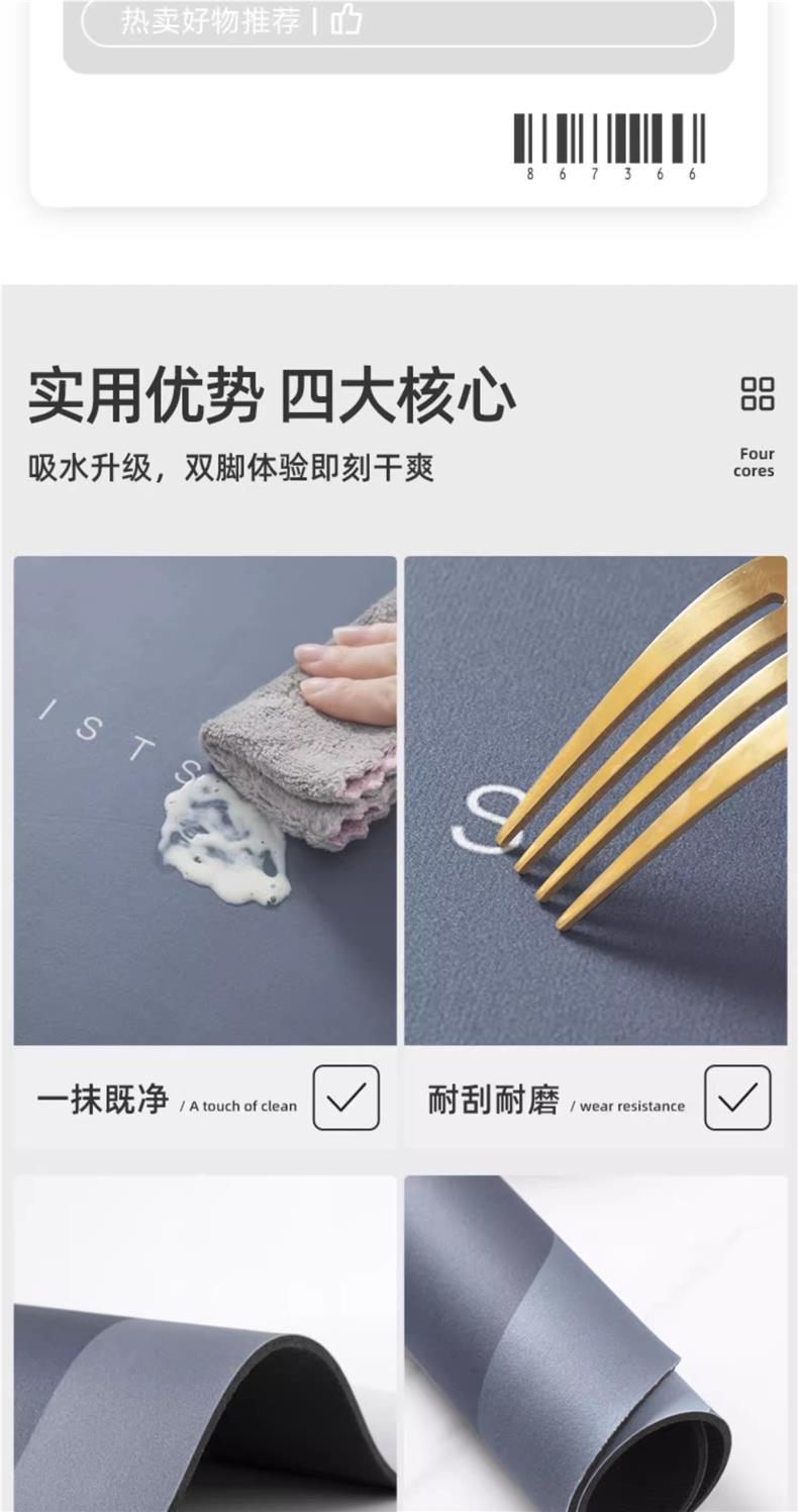 부드러운 규조토 진흙 흡수성 매트 욕실 바닥 매트 욕실 문 미끄럼 방지 속건성 발 매트 도어 매트 화장실 홈 도매스토어 가기