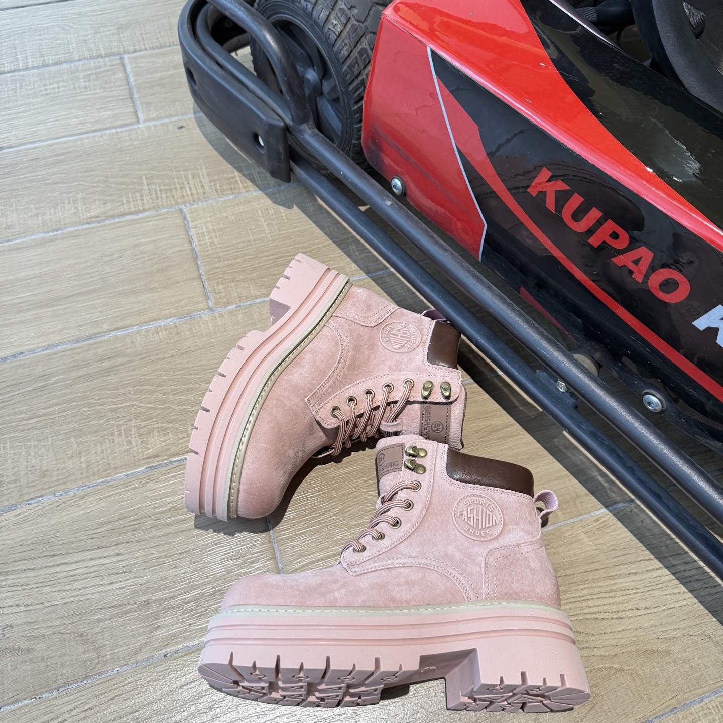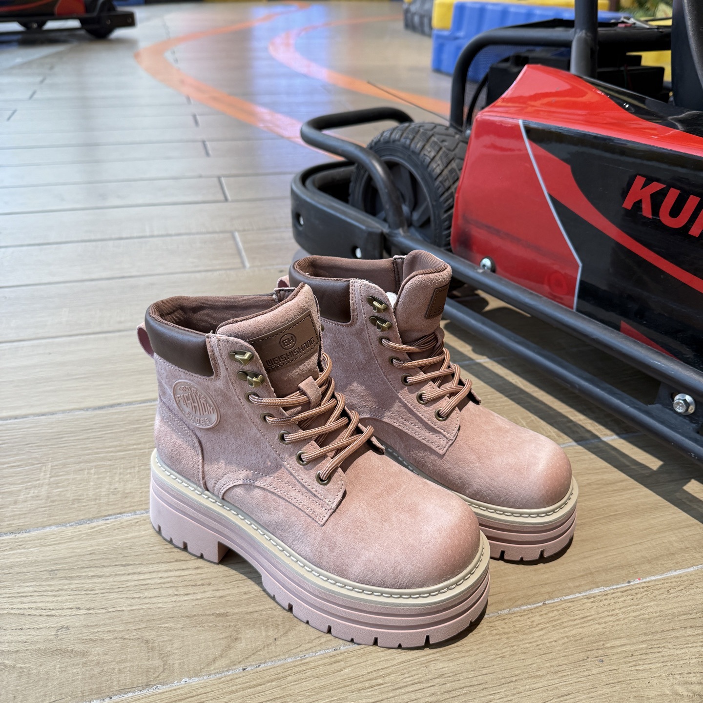 여성용 하이힐 마틴 부츠 2025 봄 가을 새로운 영국 스타일 핑크 작은 짧은 부츠 두꺼운 밑창 인기 부츠스토어 가기
