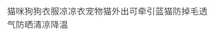 고양이와 강아지 옷, 야외 활동을 위한 시원한 옷, 블루캣을 견인할 수 있는 애완동물 고양이, 탈모 방지, 통기성, 자외선 차단제, 시원하고 냉각스토어 가기
