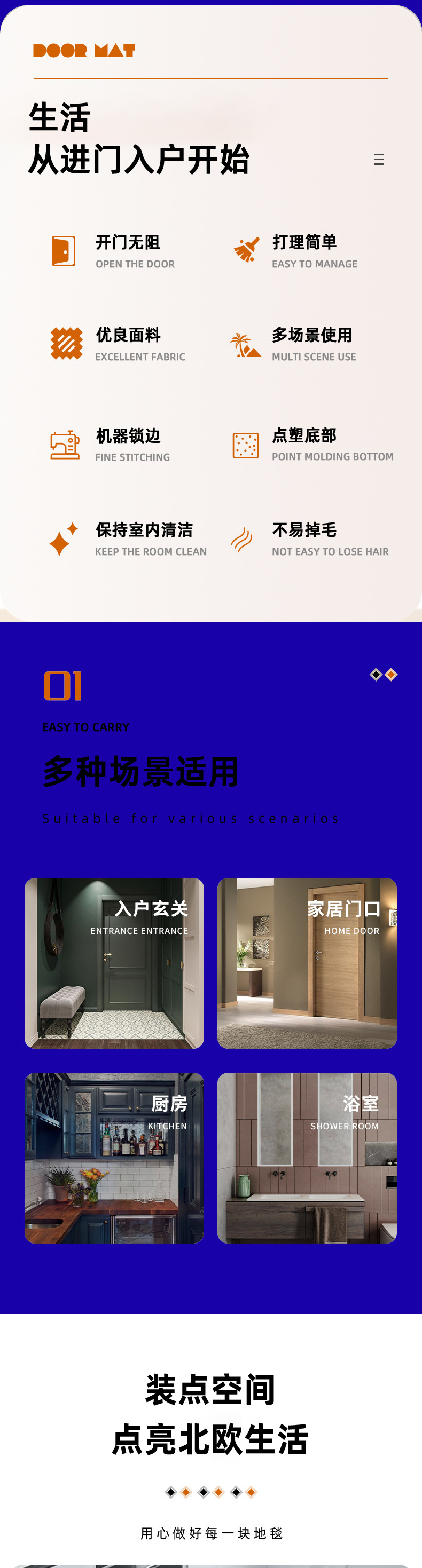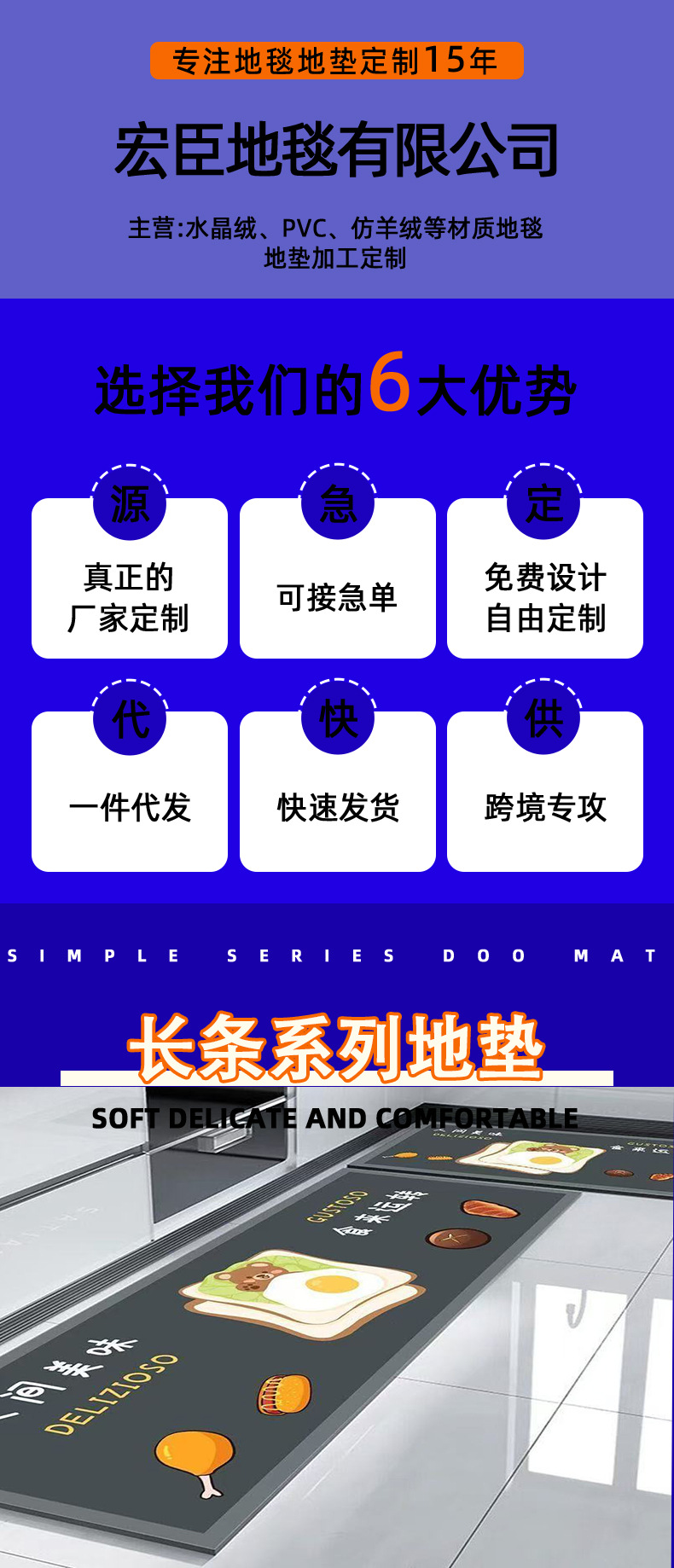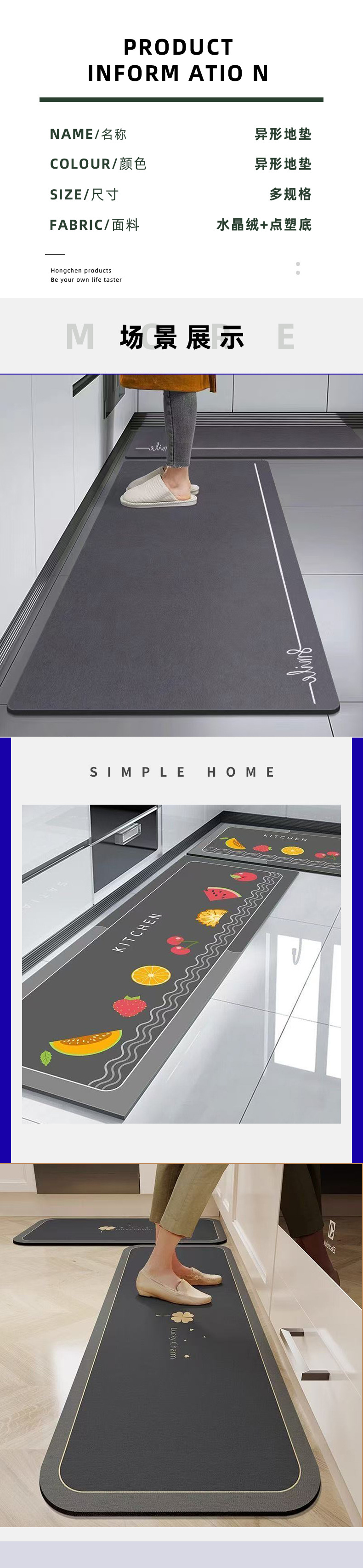 跨境长条硅藻泥地垫美式吸水防滑耐脏可擦洗厨房套装入户门软垫