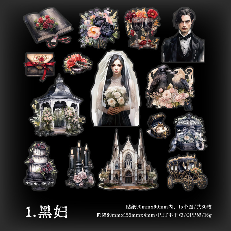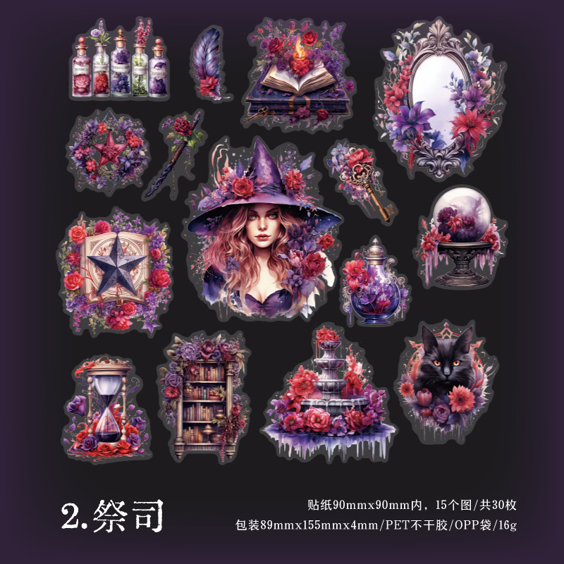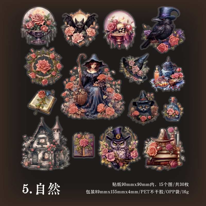 Yanji East District Witch 시리즈 PET 스티커 복고풍 마녀 핸드북 장식 재료 6가지 옵션으로 30개 포함스토어 가기
