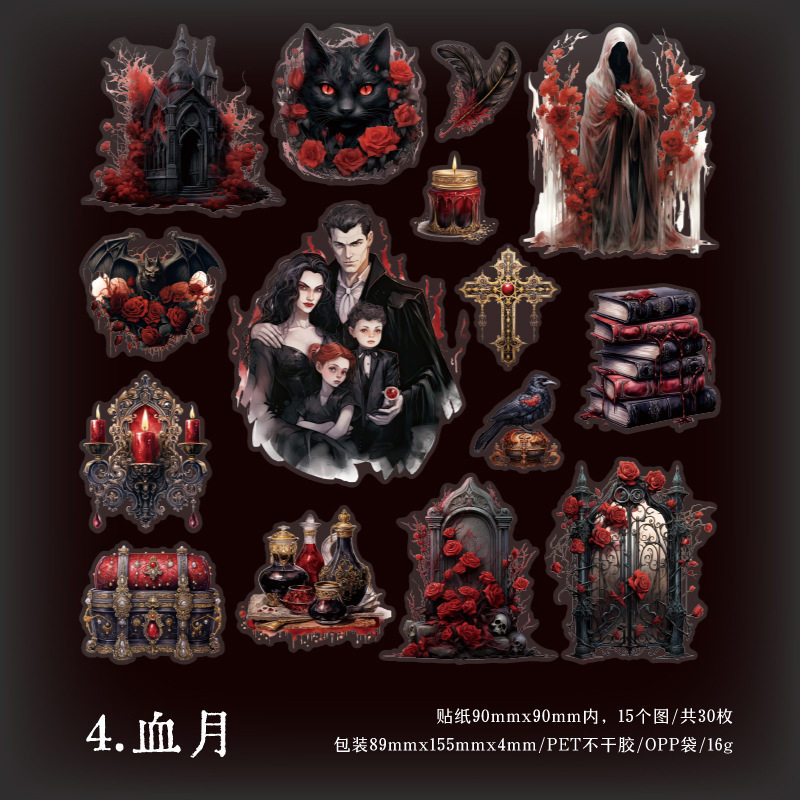 Yanji East District Witch 시리즈 PET 스티커 복고풍 마녀 핸드북 장식 재료 6가지 옵션으로 30개 포함