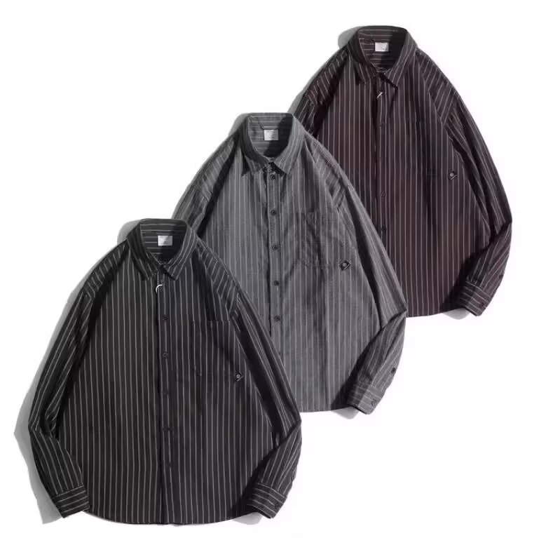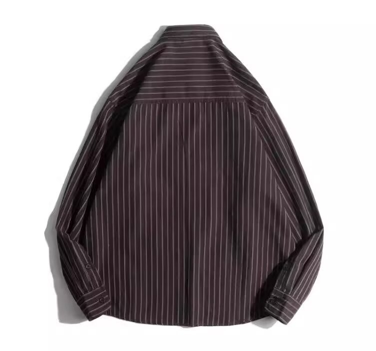 봄과 가을 일본 메일라드 복고풍 스트라이프 셔츠 소년과 소녀 대학 스타일 긴팔 느슨한 내부 셔츠 탑스토어 가기