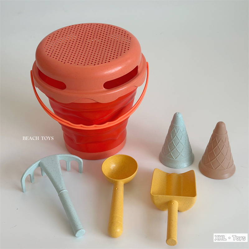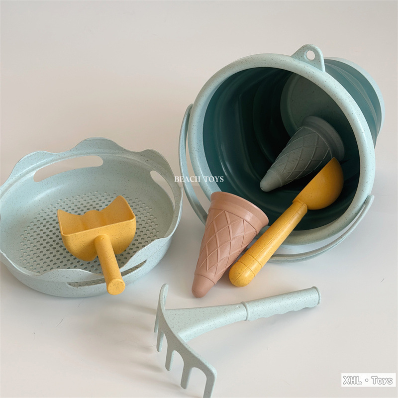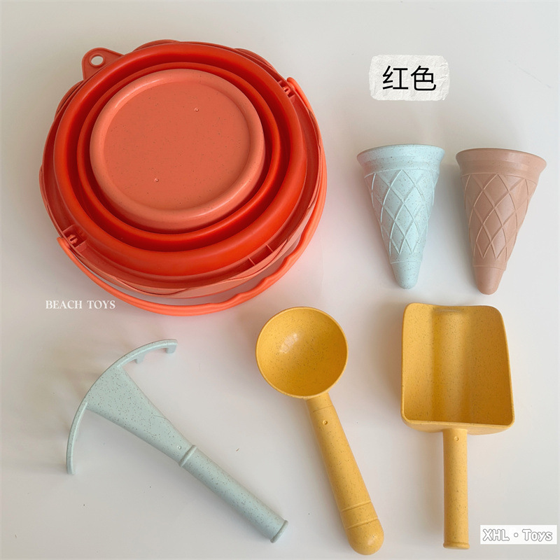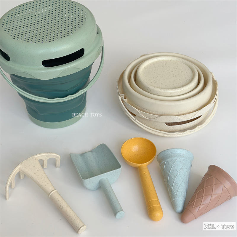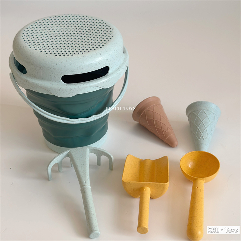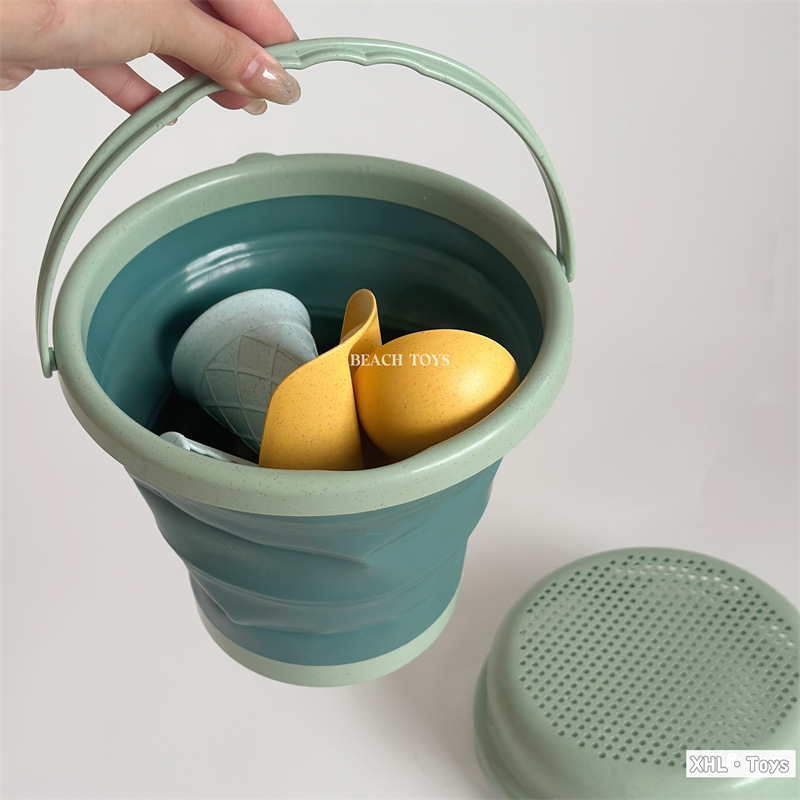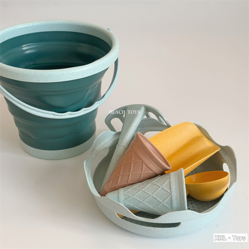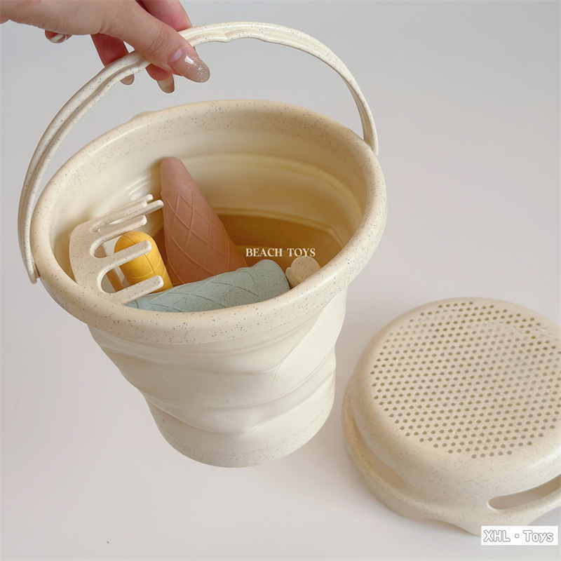 어린이 접이식 해변 양동이 휴대용 접이식 양동이 모래놀이 물놀이 모래 파기 도구 양동이 밀짚 아이스크림 해변 장난감