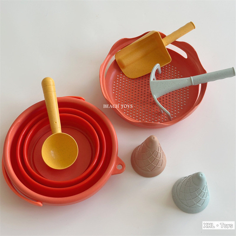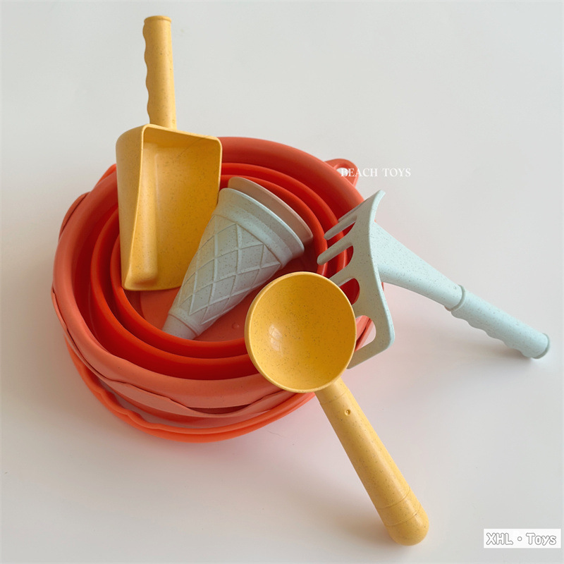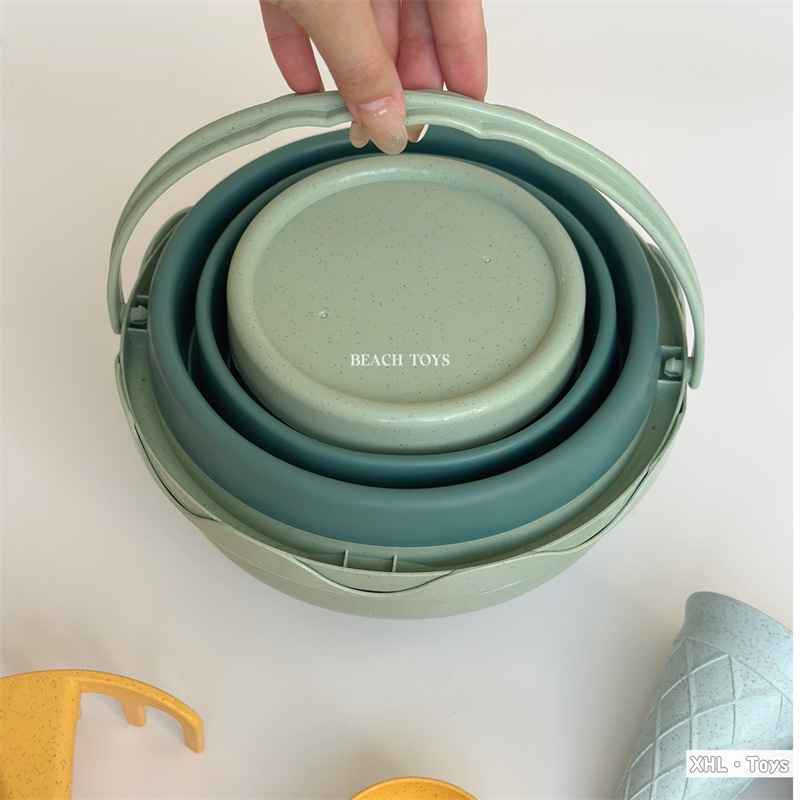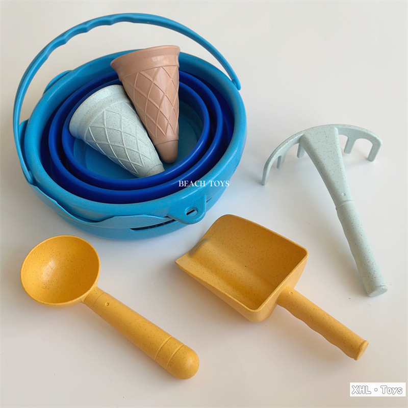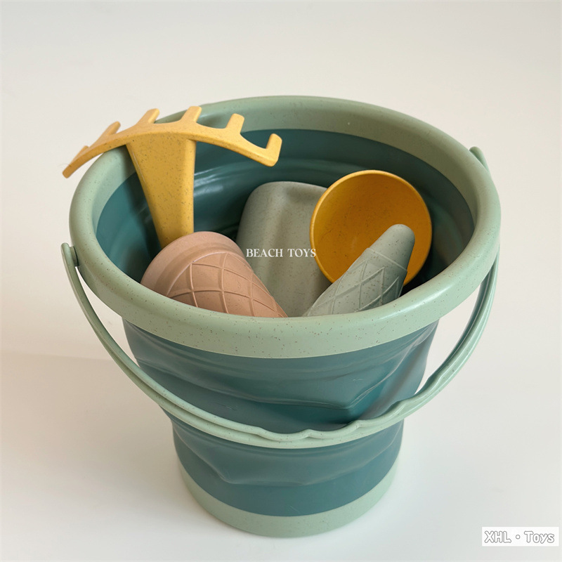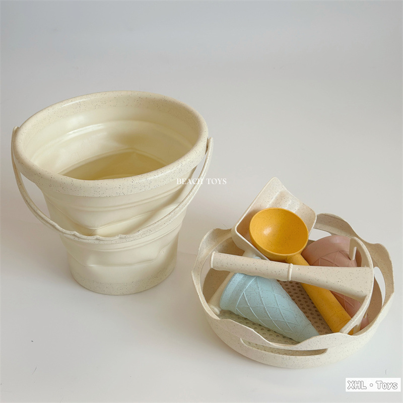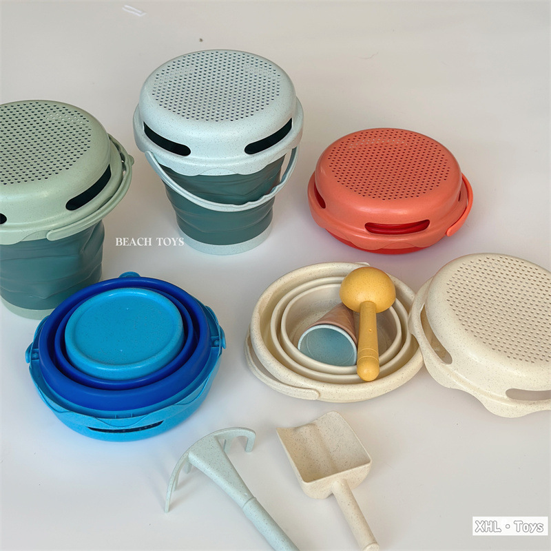 어린이 접이식 해변 양동이 휴대용 접이식 양동이 모래놀이 물놀이 모래 파기 도구 양동이 밀짚 아이스크림 해변 장난감