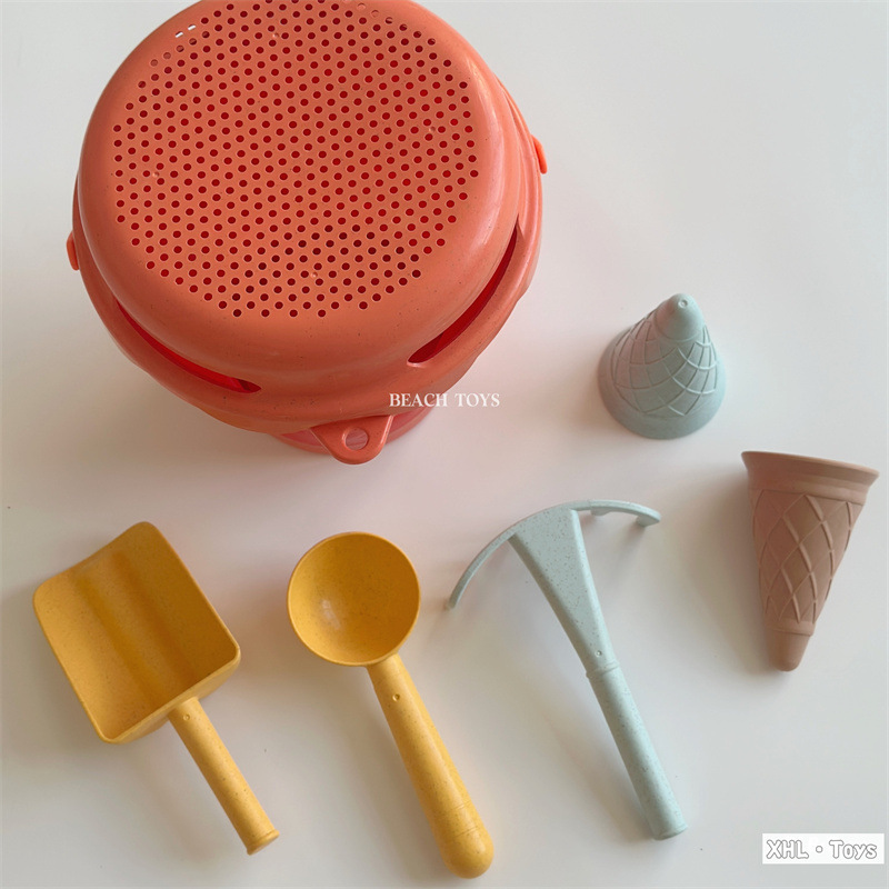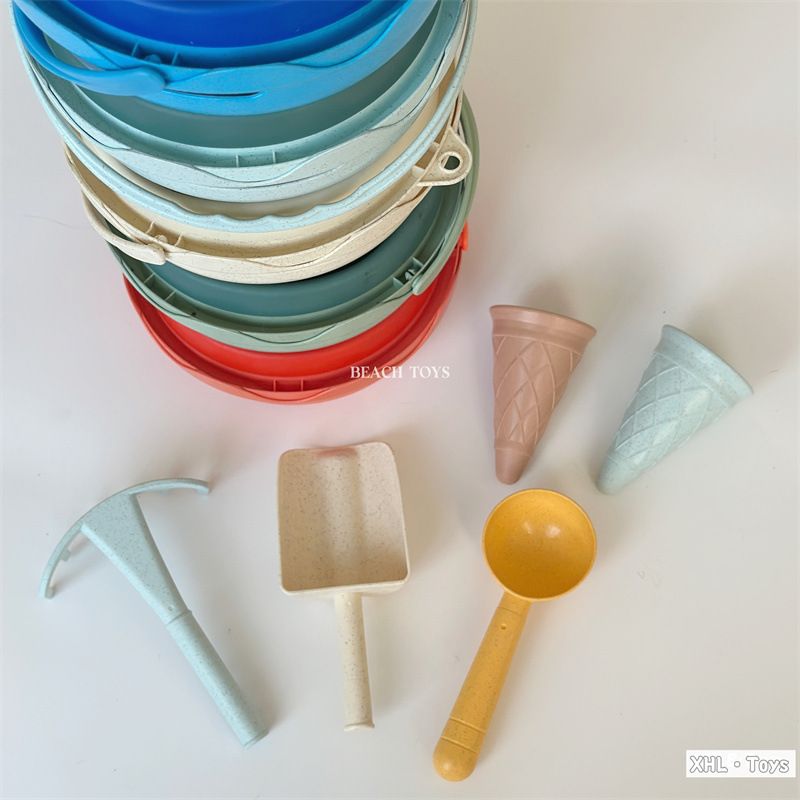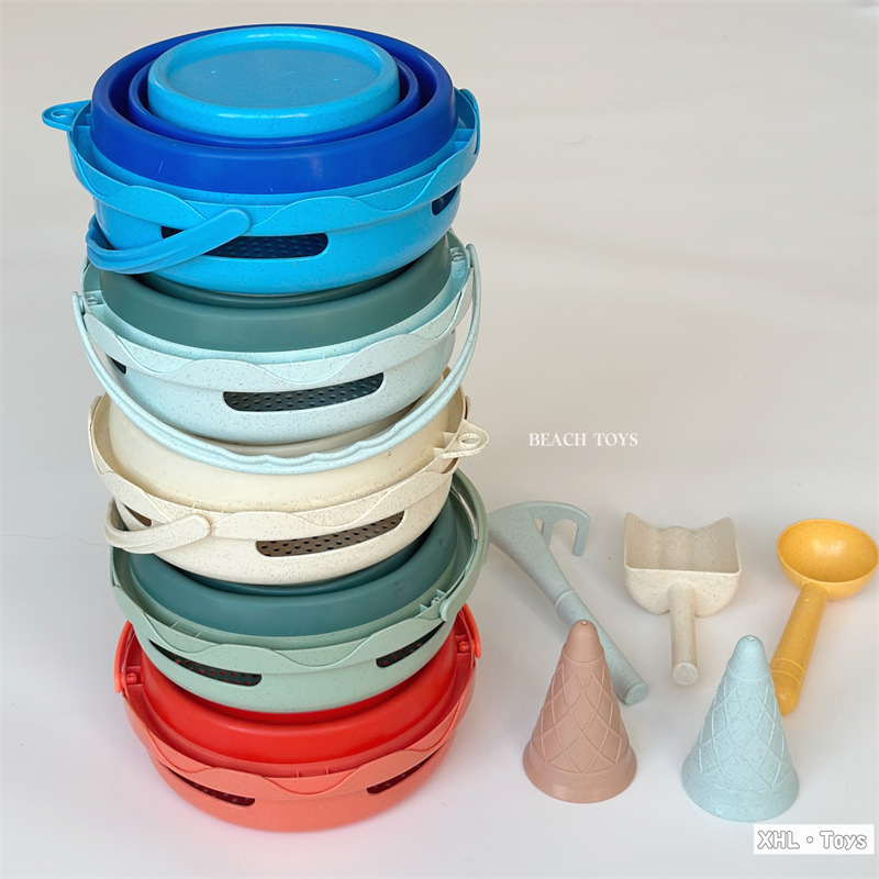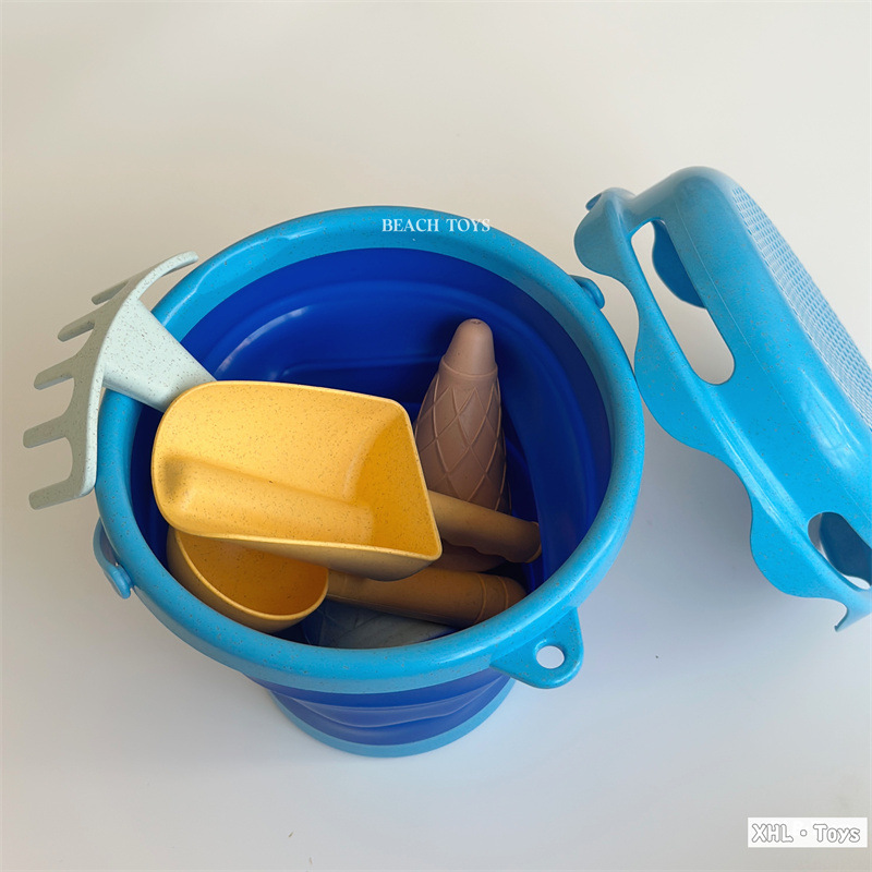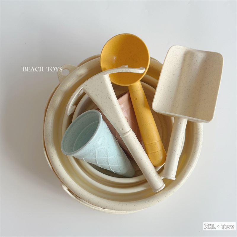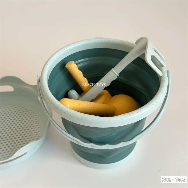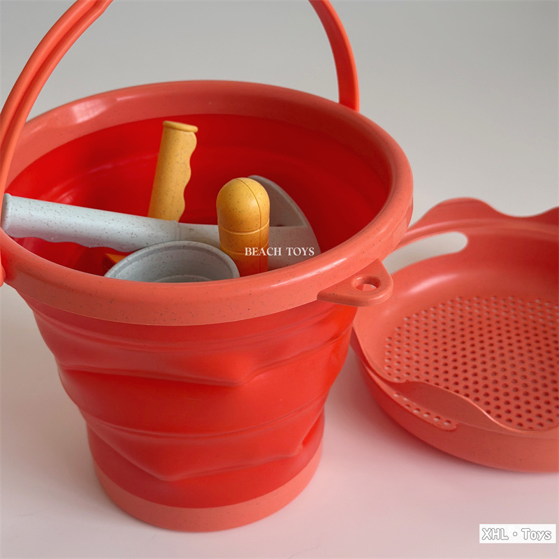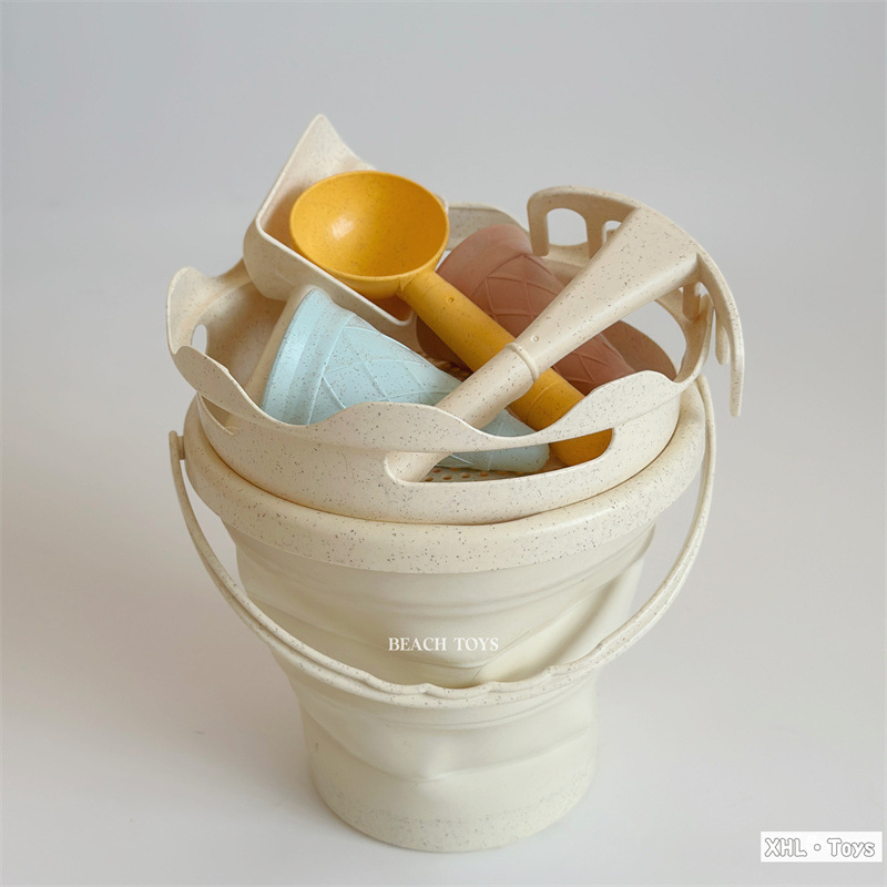 어린이 접이식 해변 양동이 휴대용 접이식 양동이 모래놀이 물놀이 모래 파기 도구 양동이 밀짚 아이스크림 해변 장난감