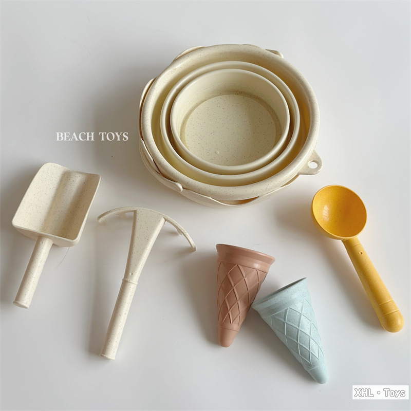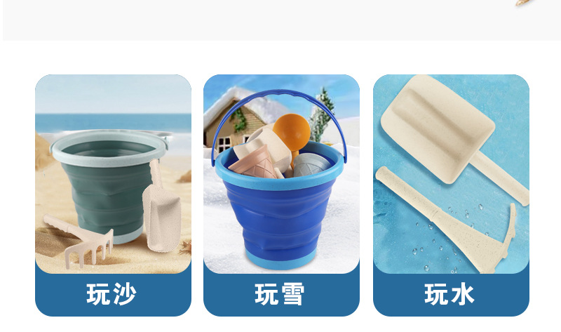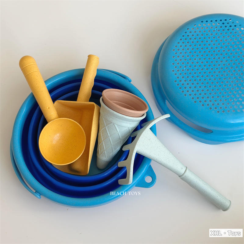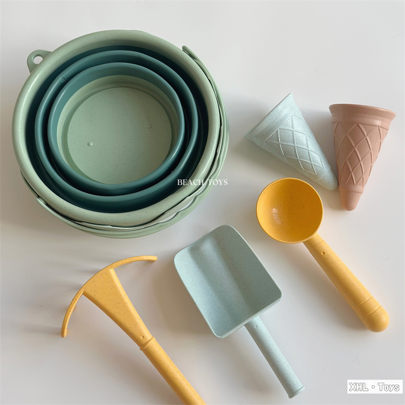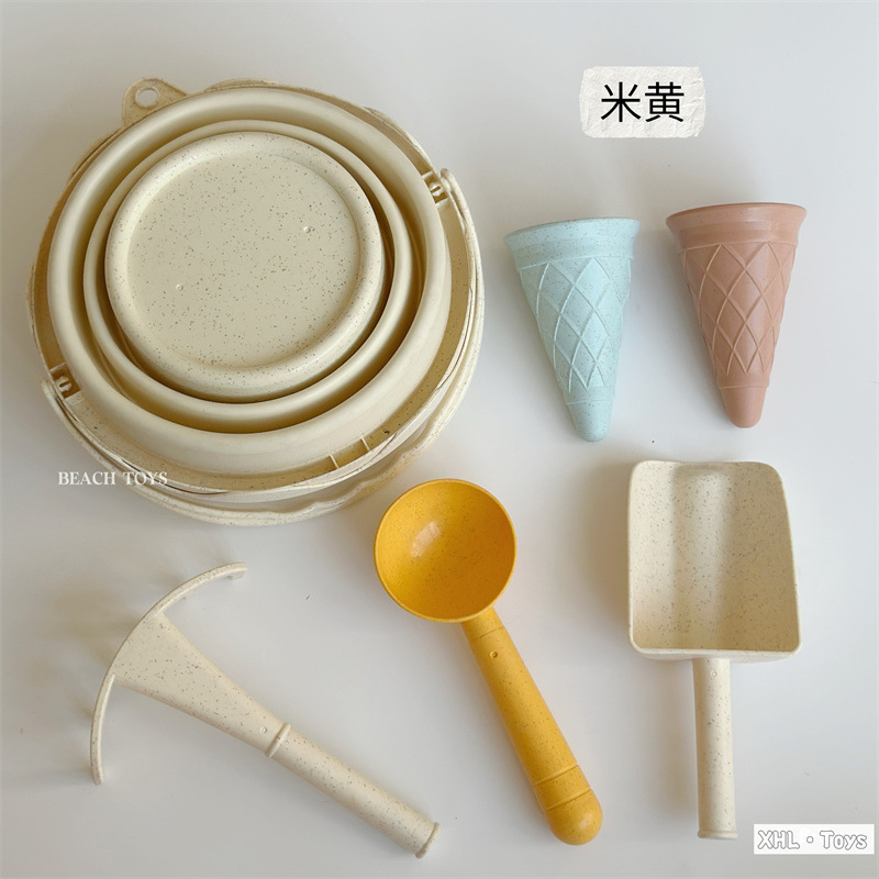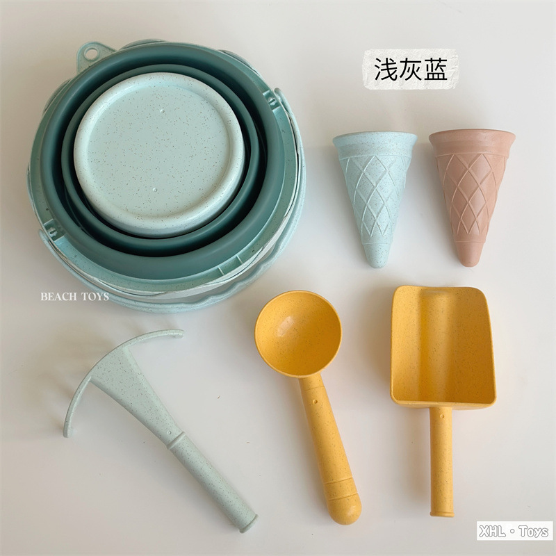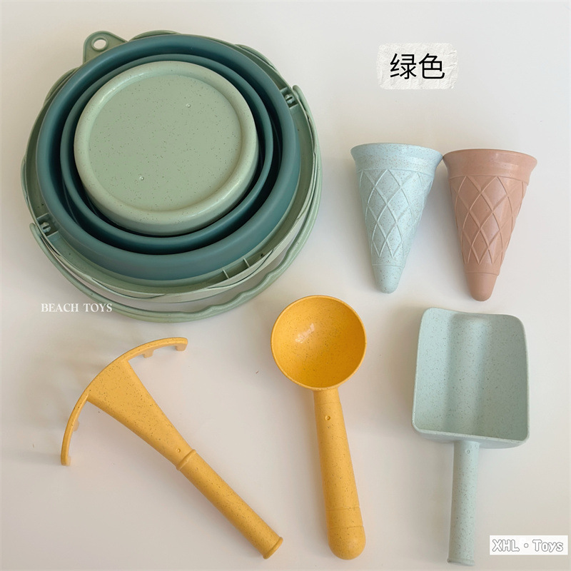 어린이 접이식 해변 양동이 휴대용 접이식 양동이 모래놀이 물놀이 모래 파기 도구 양동이 밀짚 아이스크림 해변 장난감스토어 가기