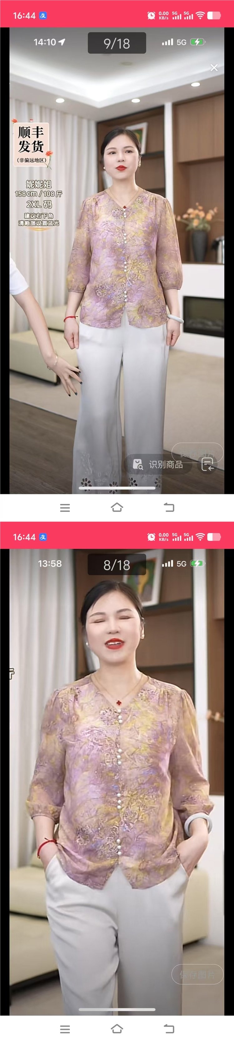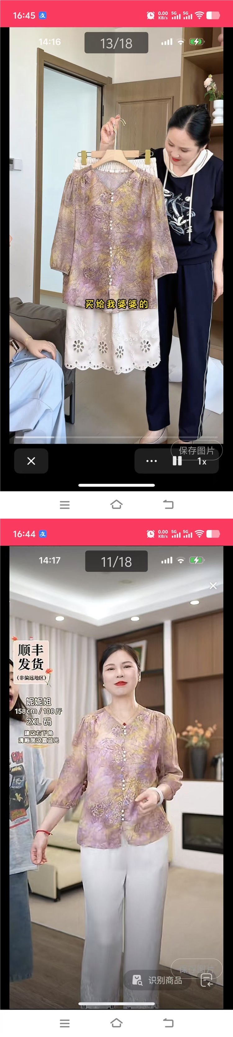 중년엄마 여름 쉬폰 셔츠, 중장년 여성을 위한 우아하고 우아한 7부소매 여름 셔츠스토어 가기