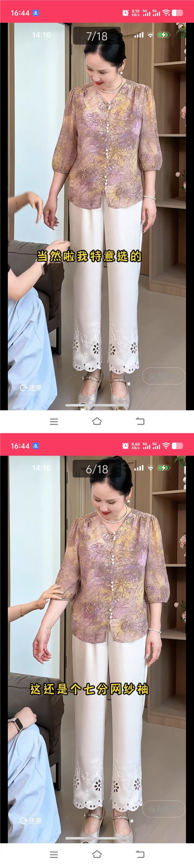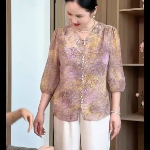 중년엄마 여름 쉬폰 셔츠, 중장년 여성을 위한 우아하고 우아한 7부소매 여름 셔츠