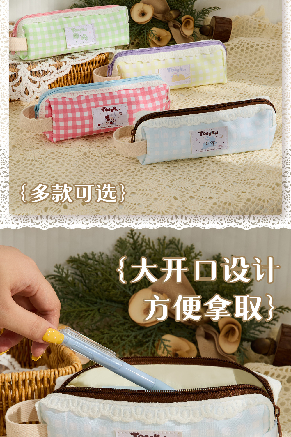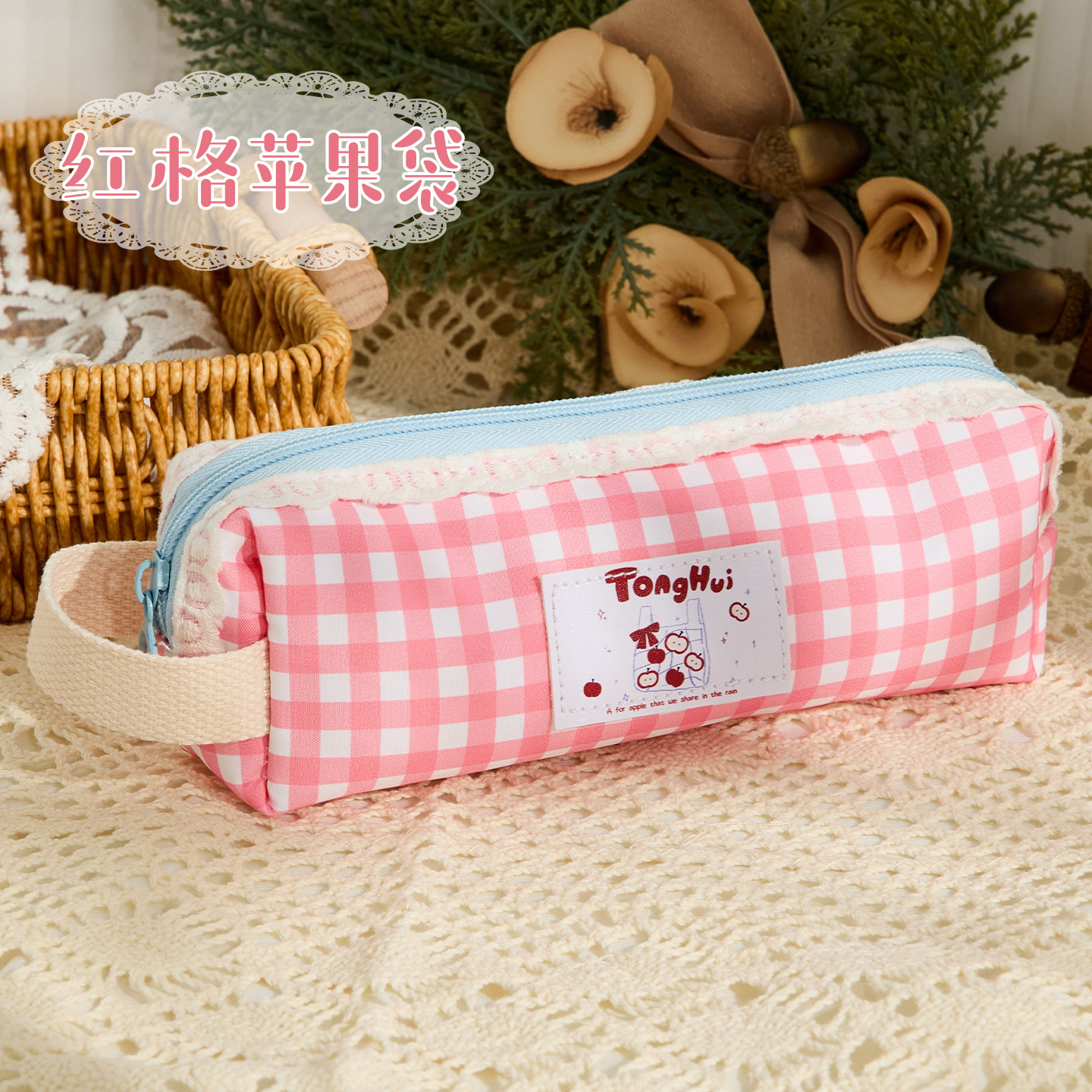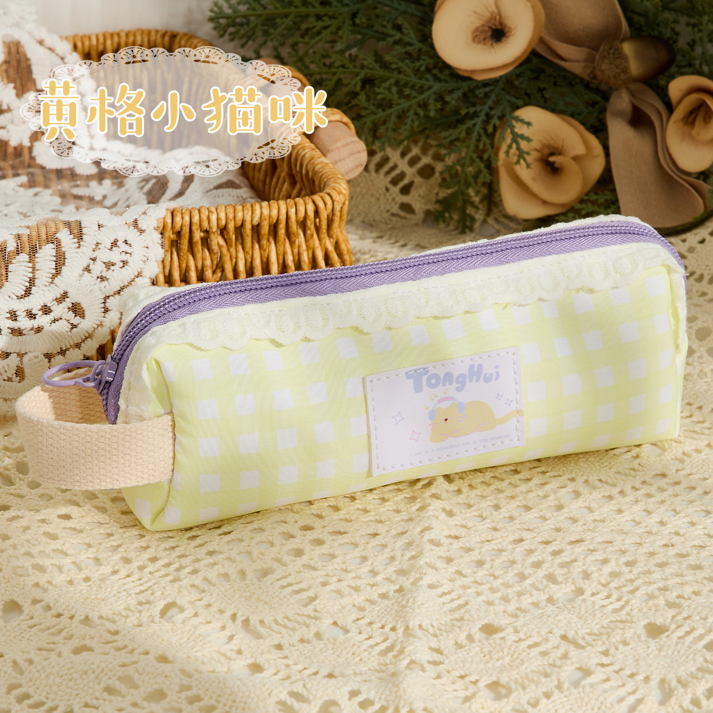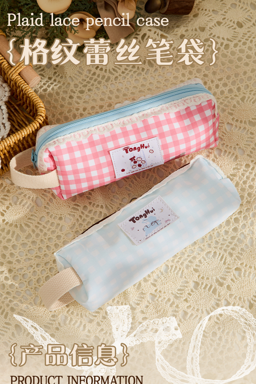 Tonghui 간단한 격자 무늬 연필 가방 고가치 ins 스타일 소녀 2025 문구 상자 대용량 초등학교 연필 상자스토어 가기