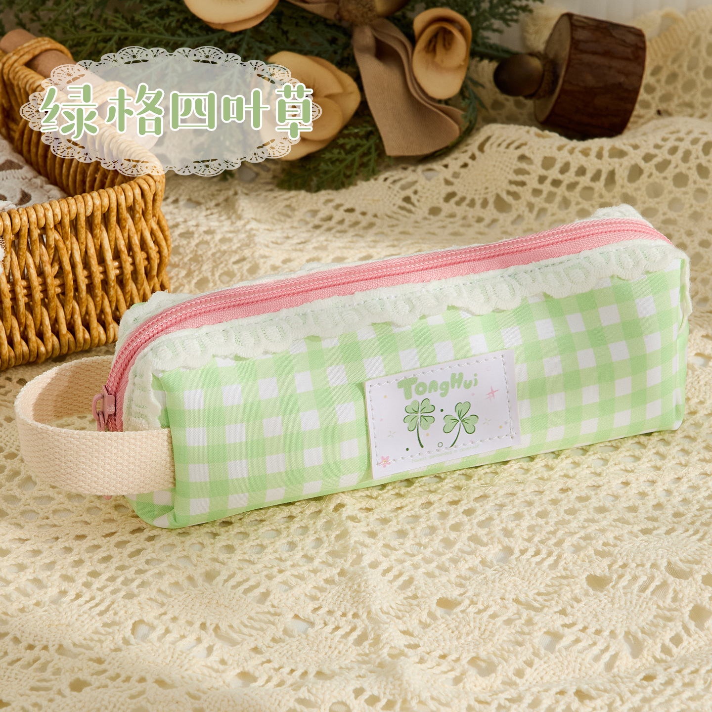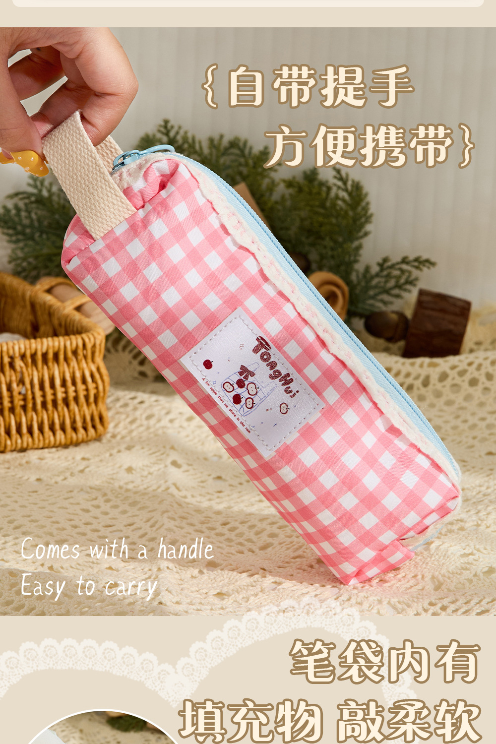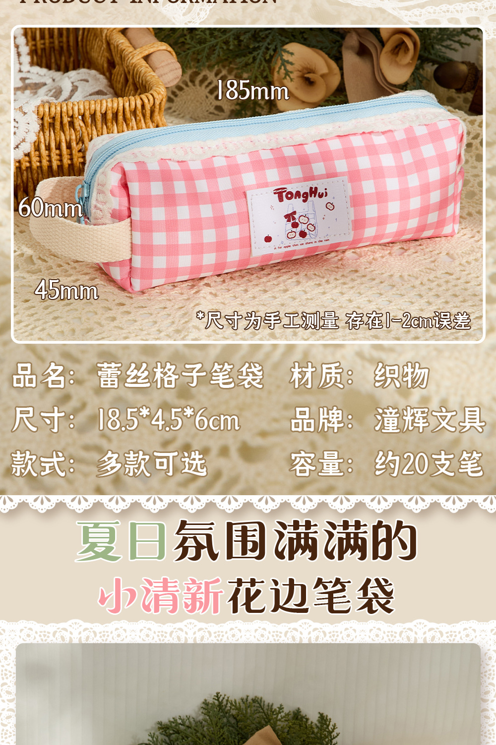 Tonghui 간단한 격자 무늬 연필 가방 고가치 ins 스타일 소녀 2025 문구 상자 대용량 초등학교 연필 상자스토어 가기