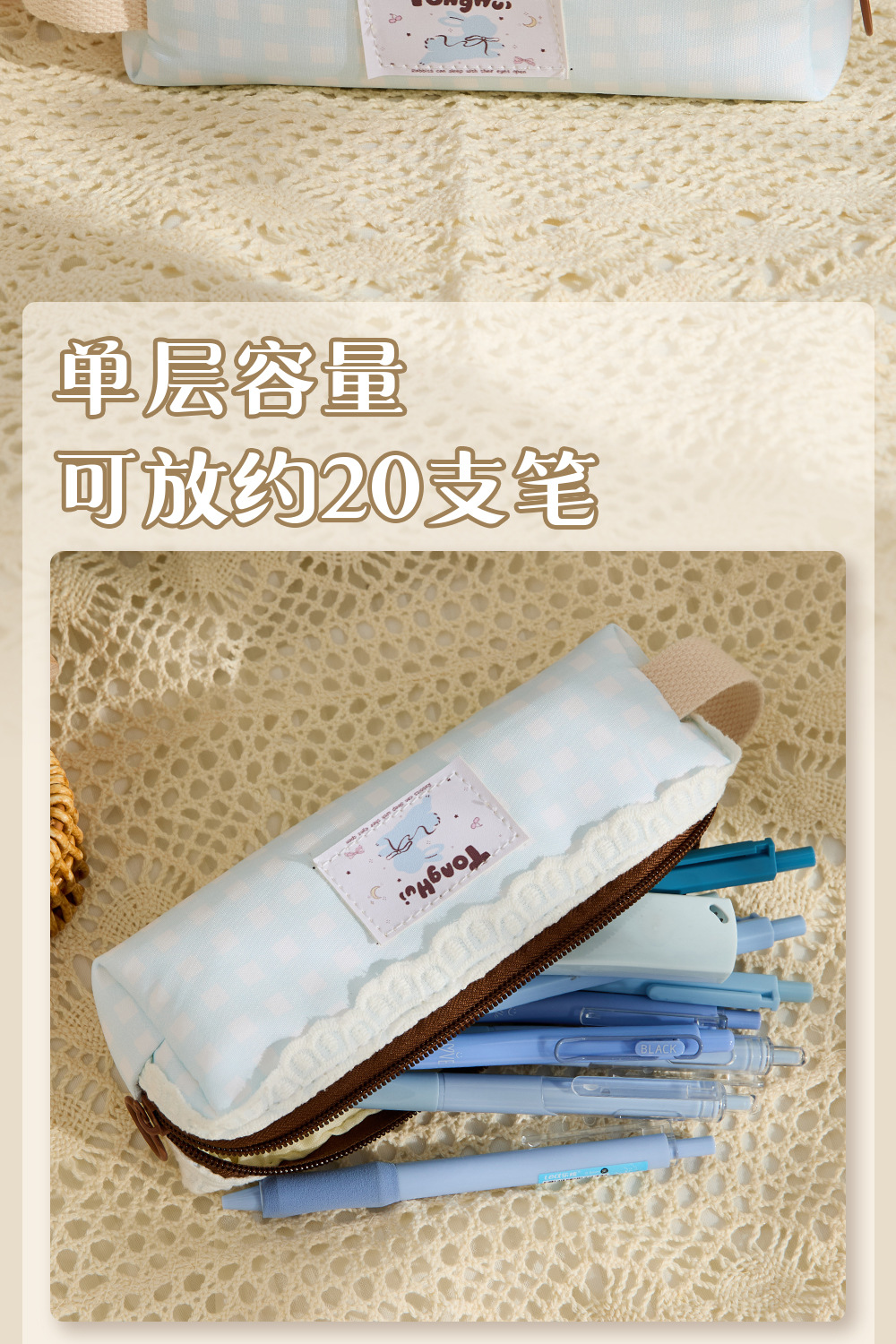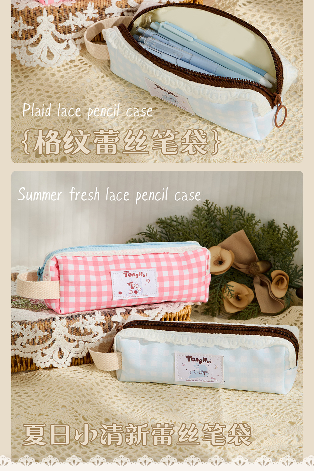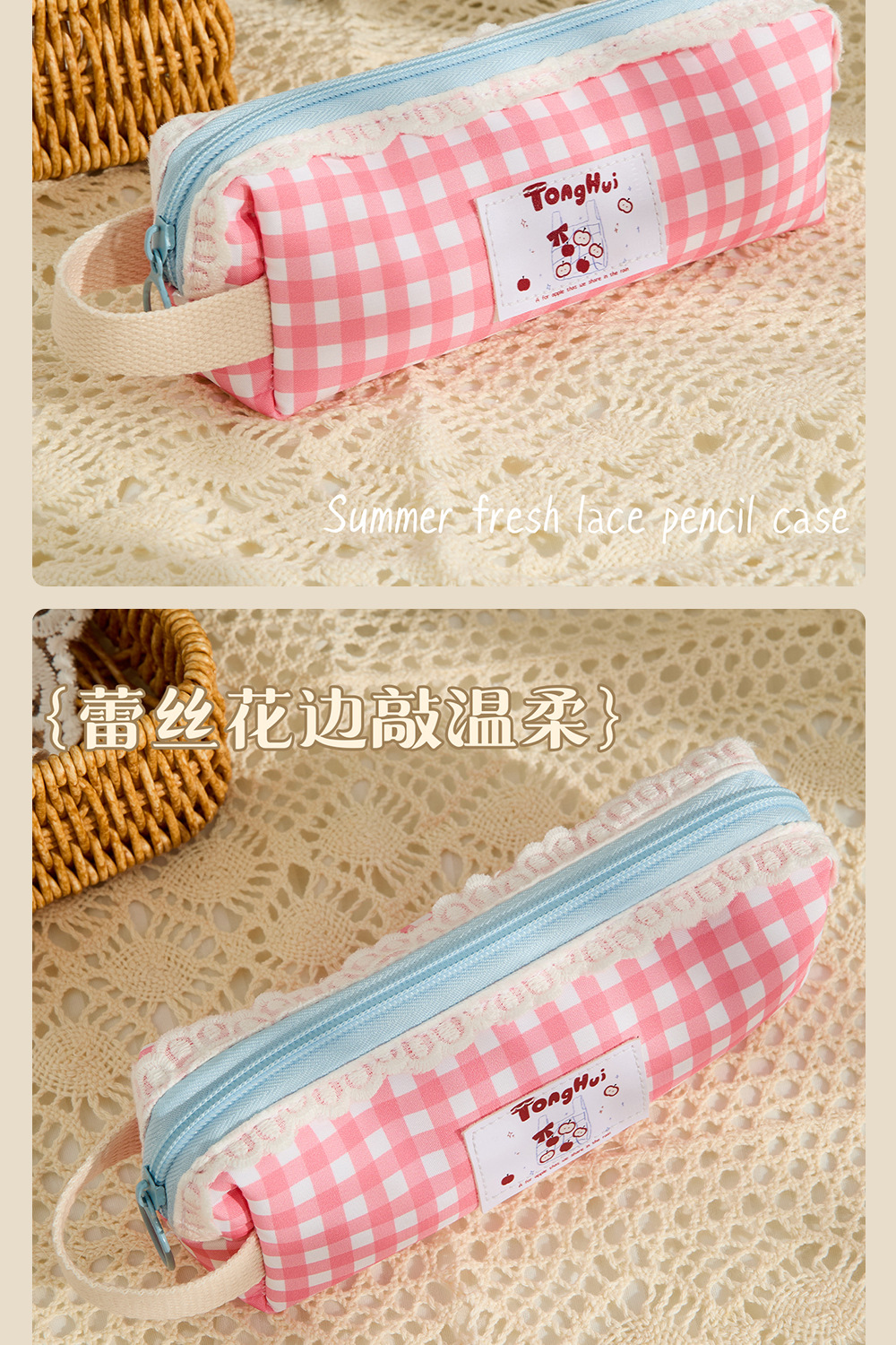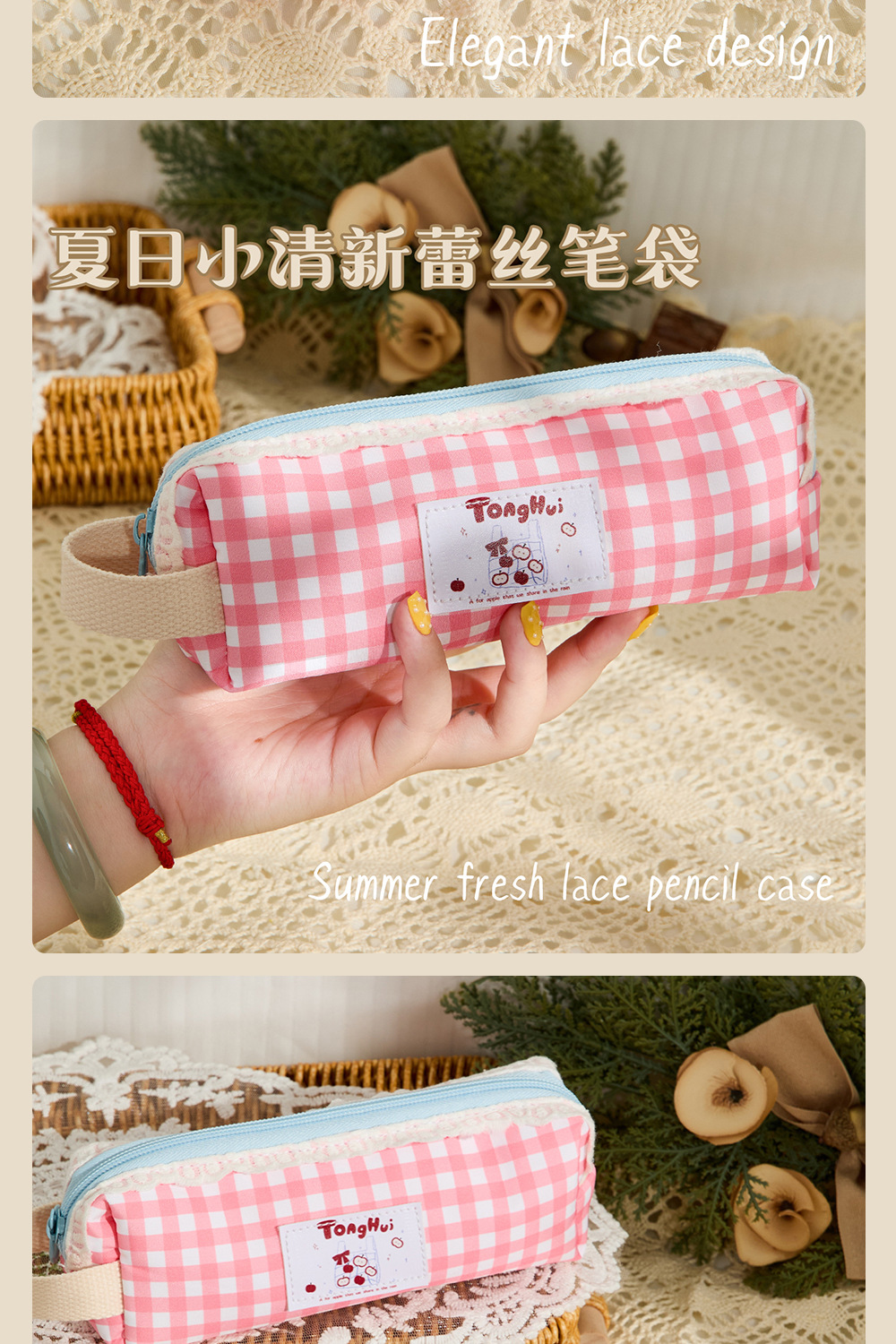 Tonghui 간단한 격자 무늬 연필 가방 고가치 ins 스타일 소녀 2025 문구 상자 대용량 초등학교 연필 상자스토어 가기