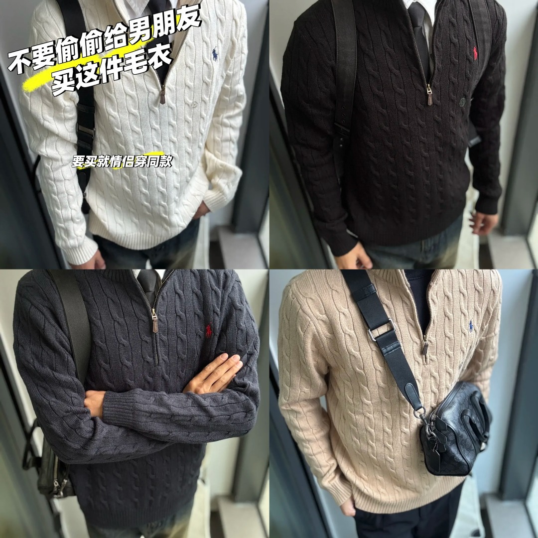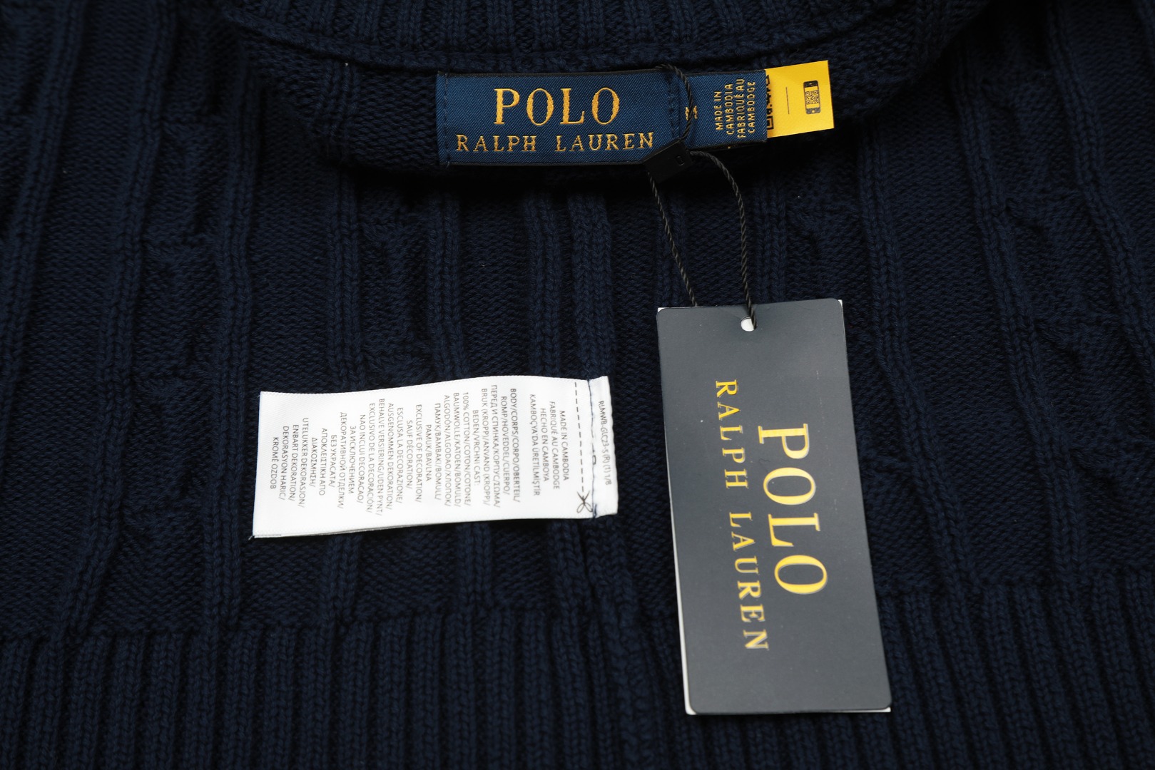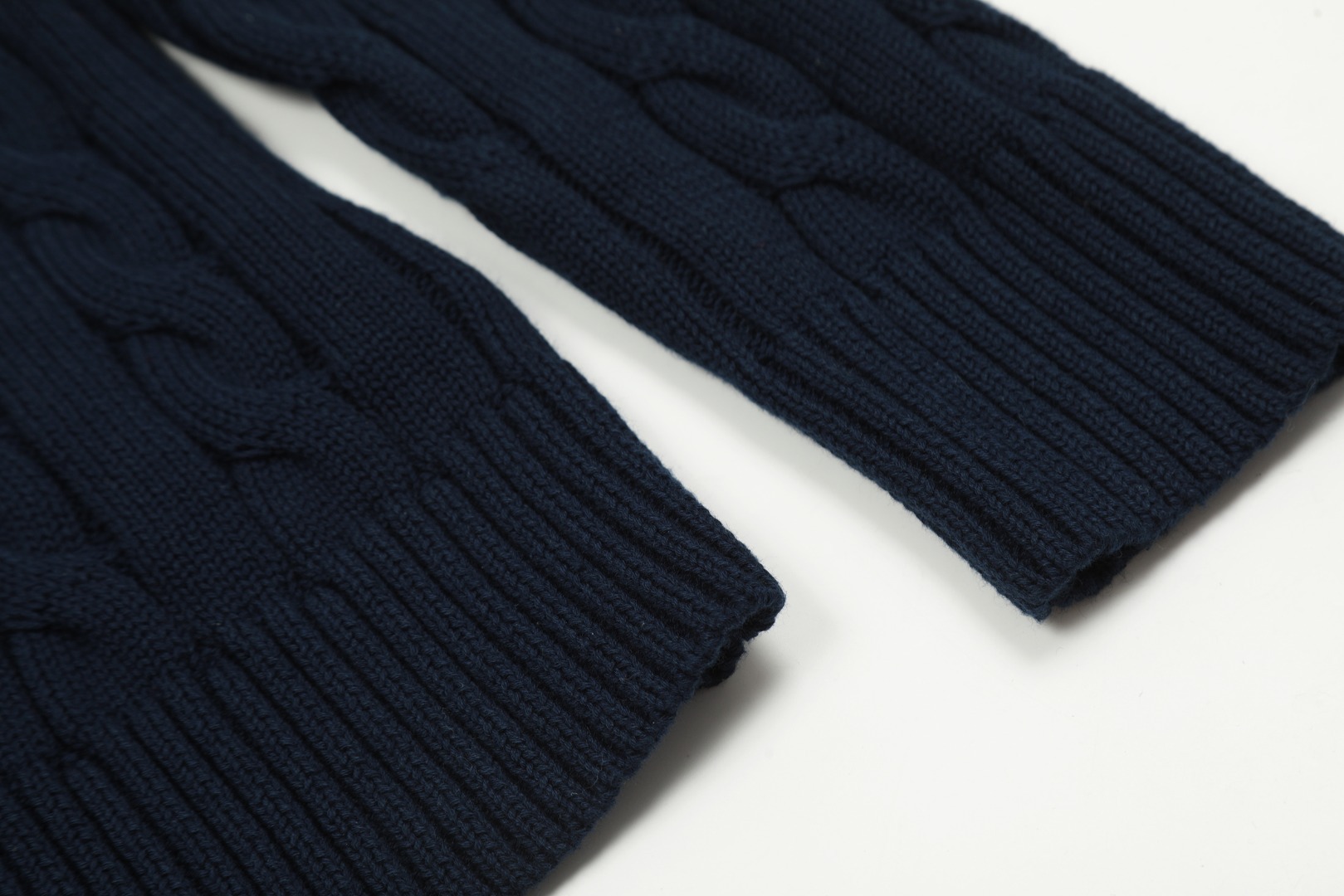 Jingke 스캔 가능한 QR 코드 RL 러프 12색 남녀공용 라운드넥 케이블 긴팔 니트 가디건 자수 트위스트 작은 라벨스토어 가기