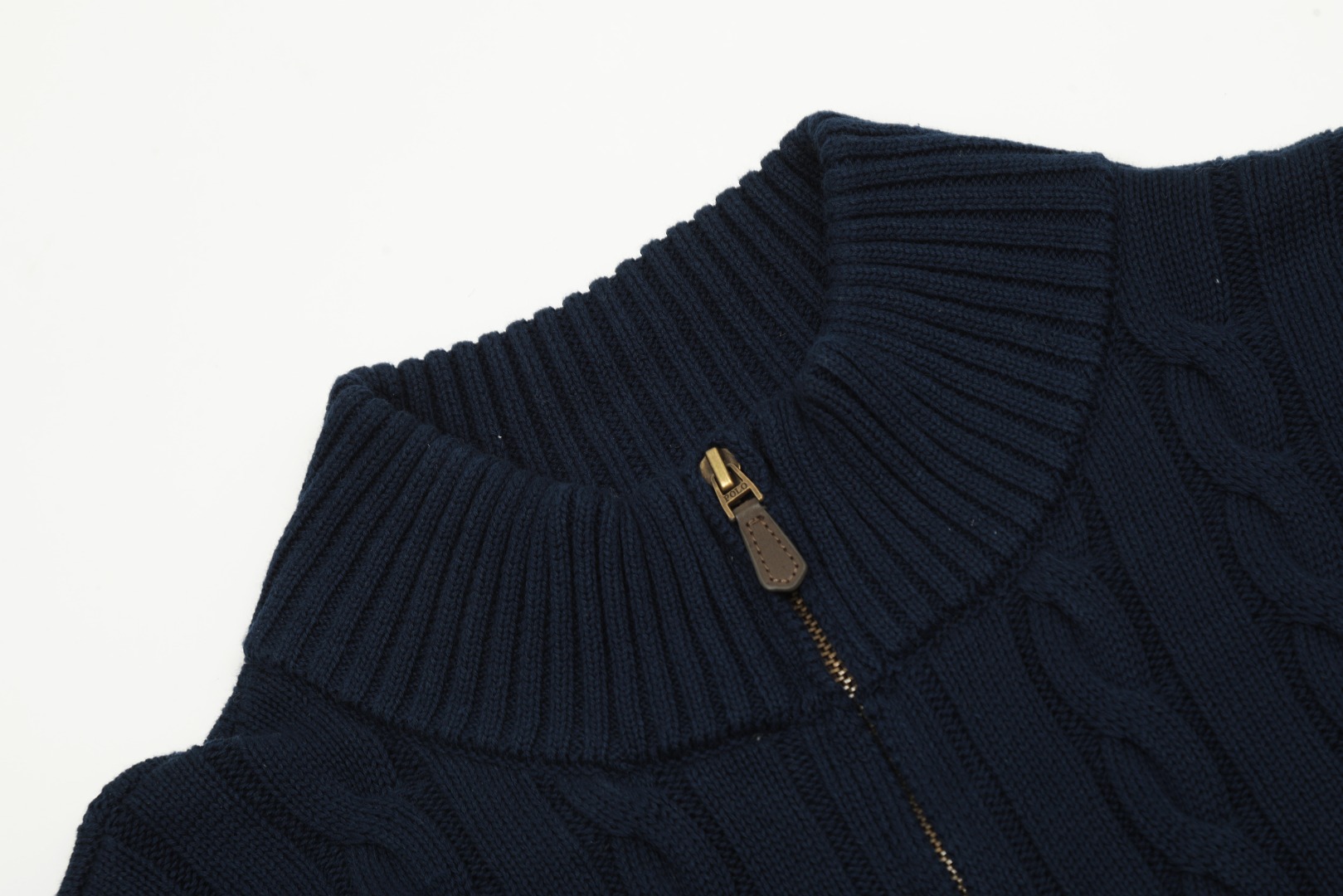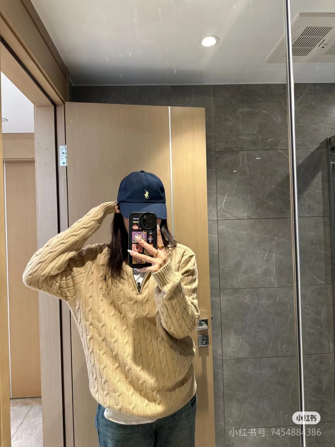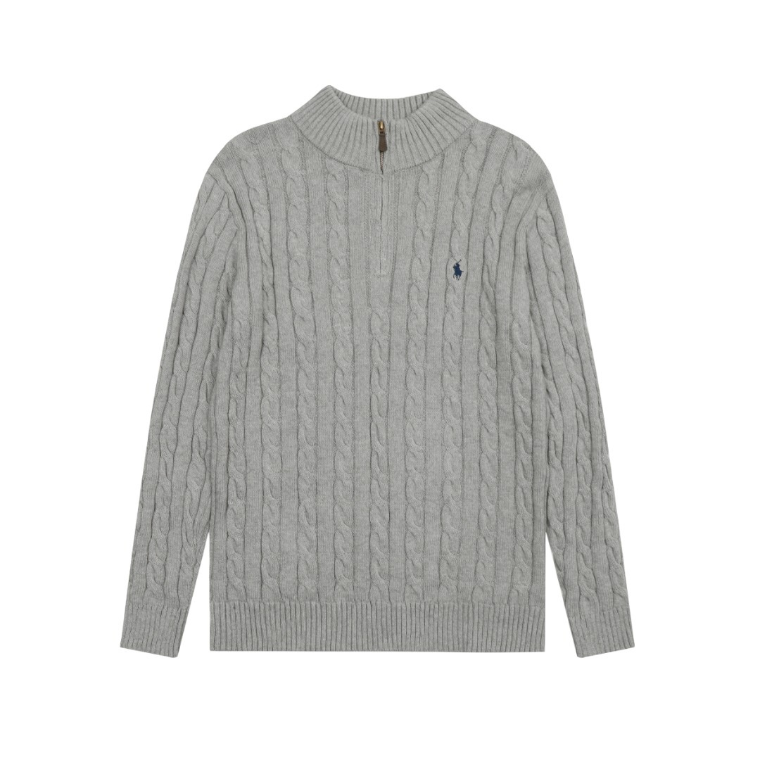 Jingke 스캔 가능한 QR 코드 RL 러프 12색 남녀공용 라운드넥 케이블 긴팔 니트 가디건 자수 트위스트 작은 라벨스토어 가기