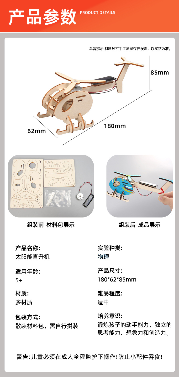 증기 과학 실험 과학 및 교육 장난감 수제 DIY 항공기 태양열 구동 헬리콥터 과학 기술 소규모 생산