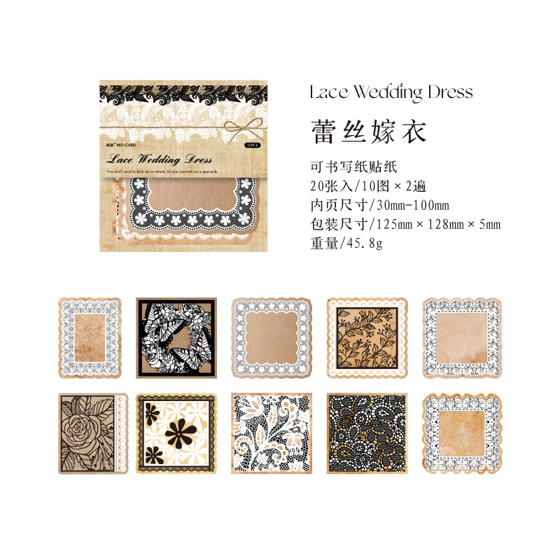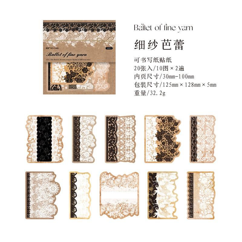 Mo Mo 노란색 레이스 시리즈 핸드북 스티커 팩 문학적 복고풍 오래된 더블 레이어 레이스 베이스 장식 콜라주