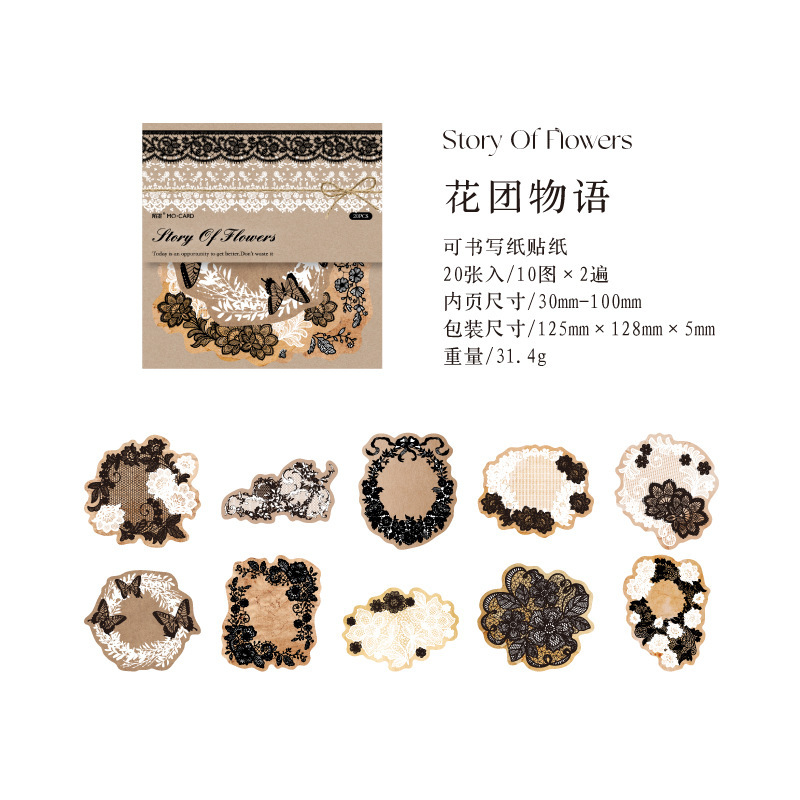 Mo Mo 노란색 레이스 시리즈 핸드북 스티커 팩 문학적 복고풍 오래된 더블 레이어 레이스 베이스 장식 콜라주스토어 가기