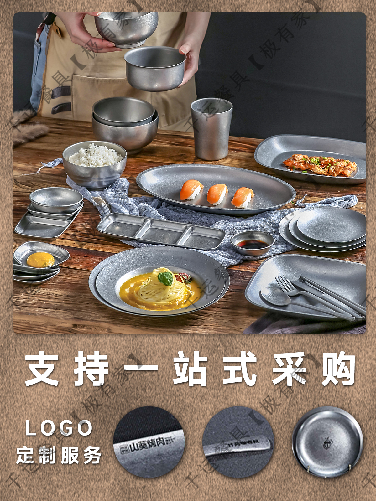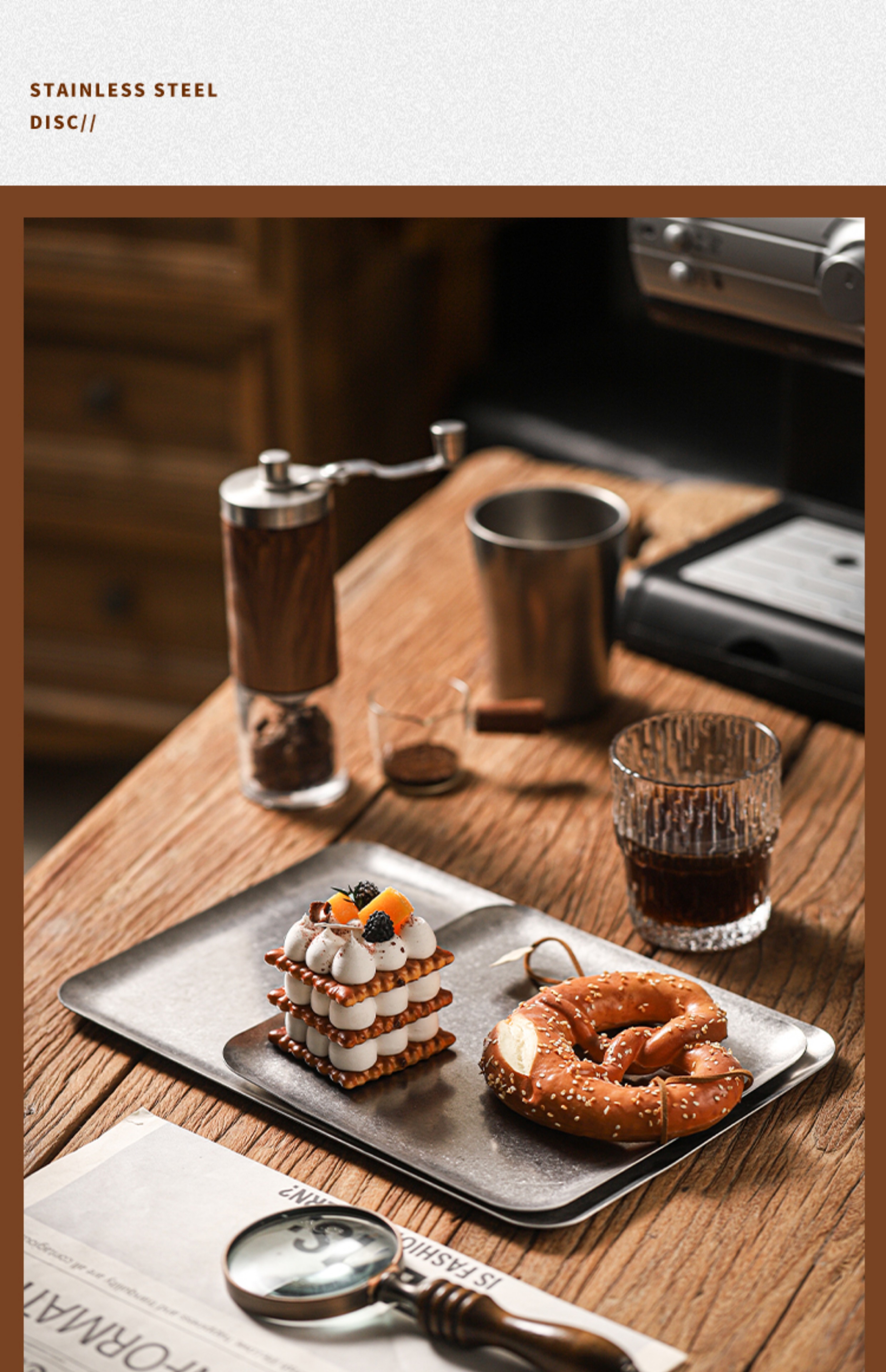 미국 복고풍 식기 산업 스타일 스테인레스 스틸 버거 트레이 디너 플레이트 감자 튀김 커피 서양 음식 디너 플레이트 맞춤 제작자스토어 가기