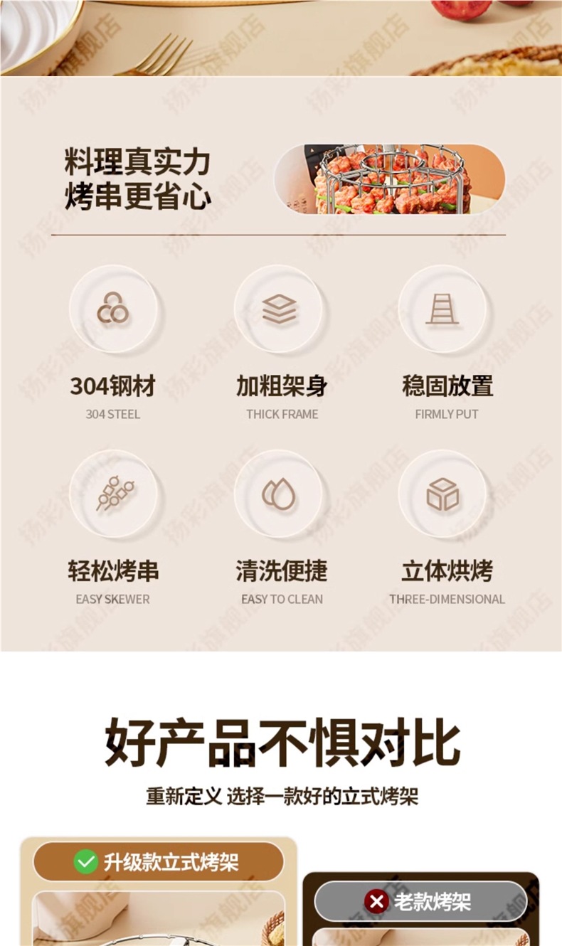 에어 프라이어 그릴 가정용 304 스테인레스 스틸 오븐 행잉 스탠드 무료 플립 수직 바베큐 꼬치 꼬치 그릴