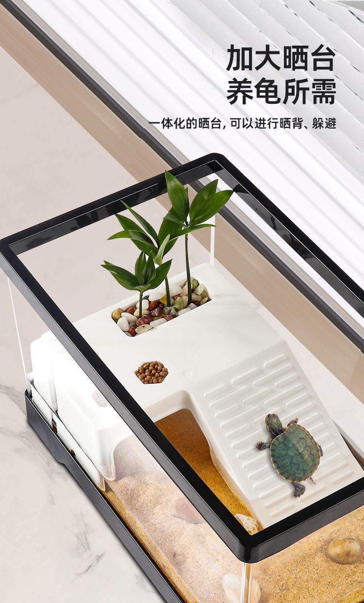 태양광 플랫폼이 있는 가정용 거북이 수조, 조경 빌라, 생태 거북이 수조, 수륙 양용 대형 및 소형 가정용 브라질 거북이 수조스토어 가기