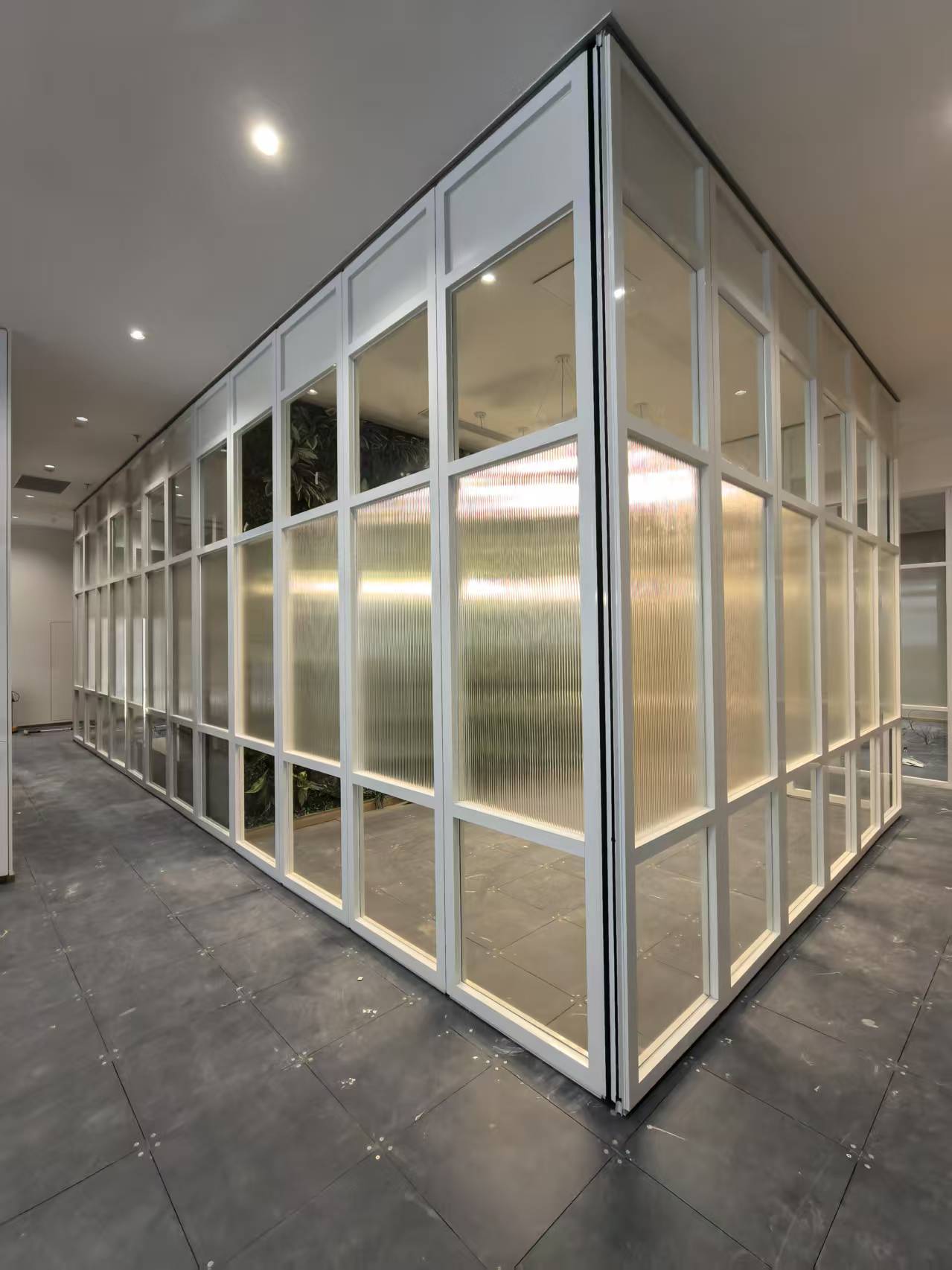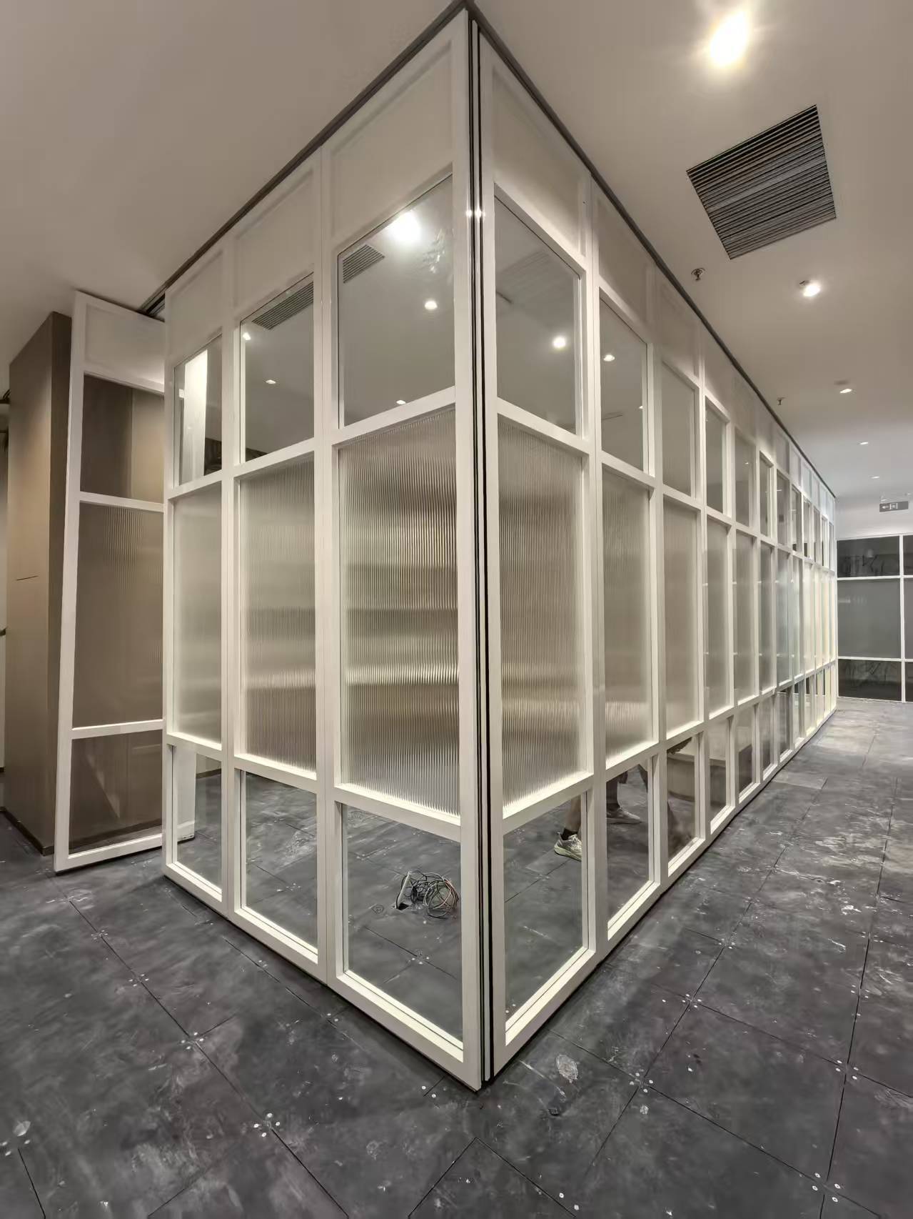 제조업체는 알루미늄 합금 스크린 칸막이 패널, 강화 유리 칸막이 벽, 회의실 유리 마감 이동식 칸막이를 생산합니다.스토어 가기