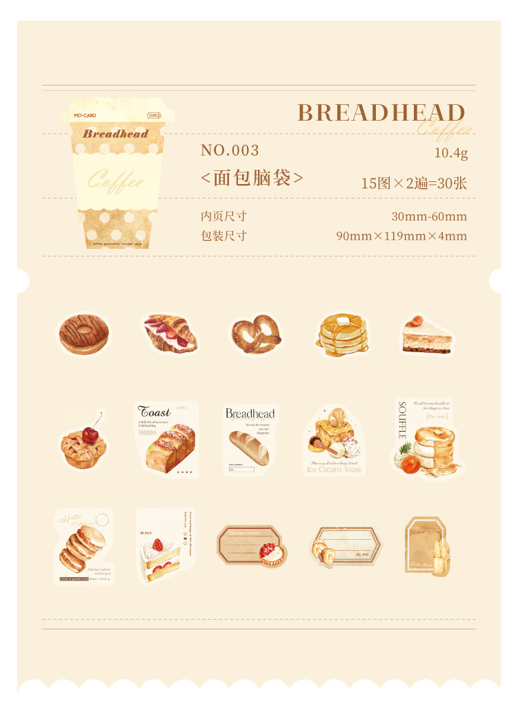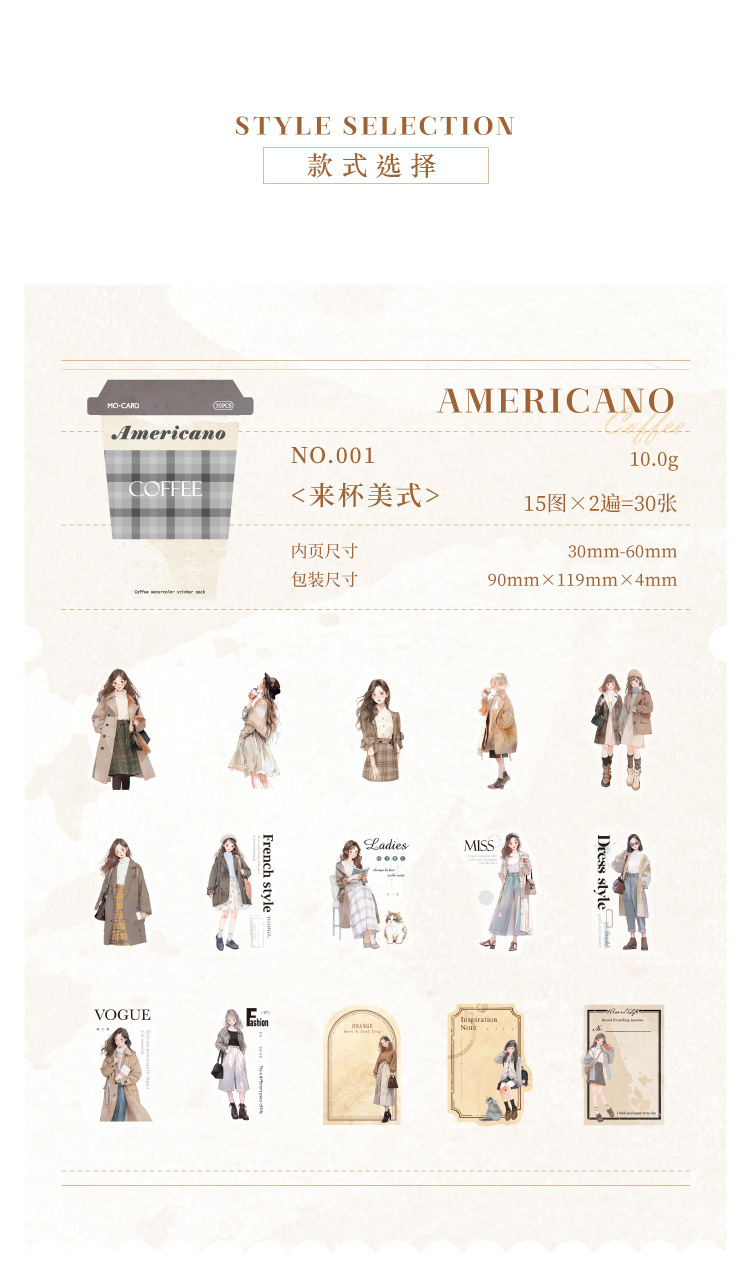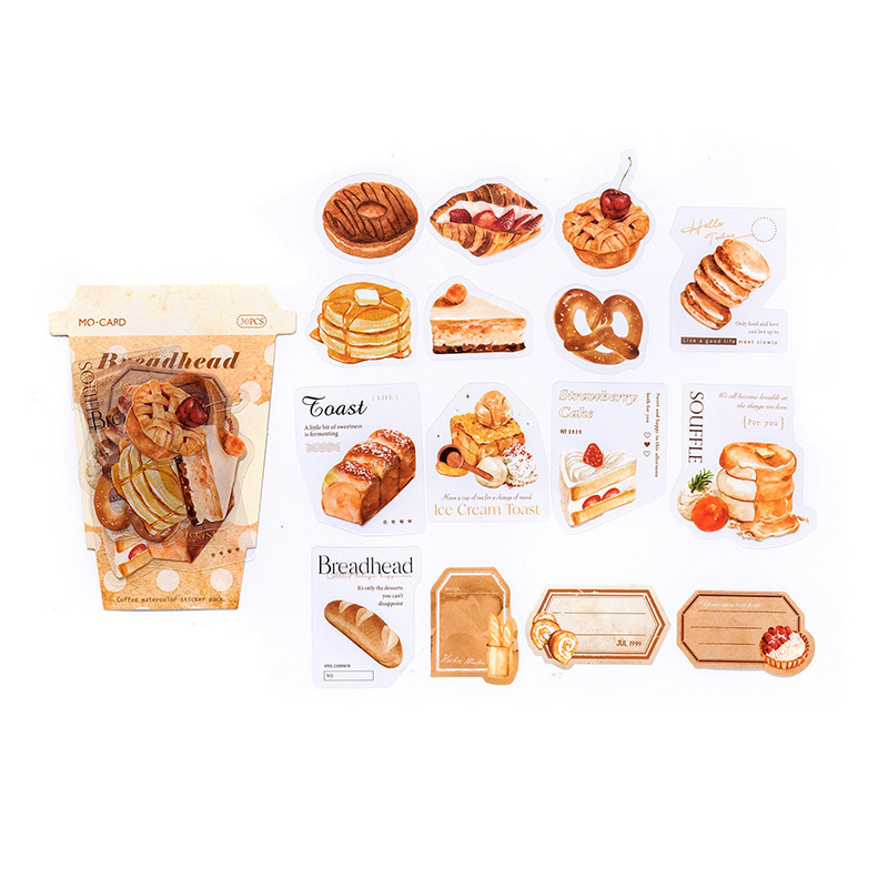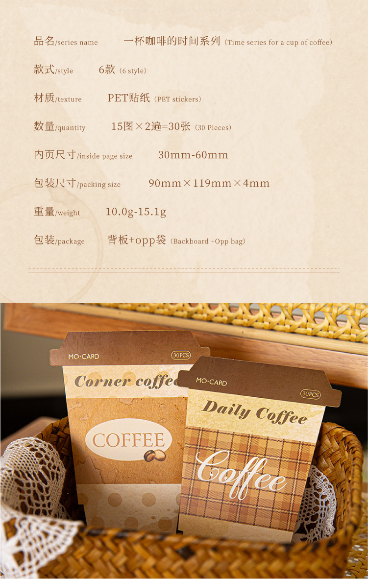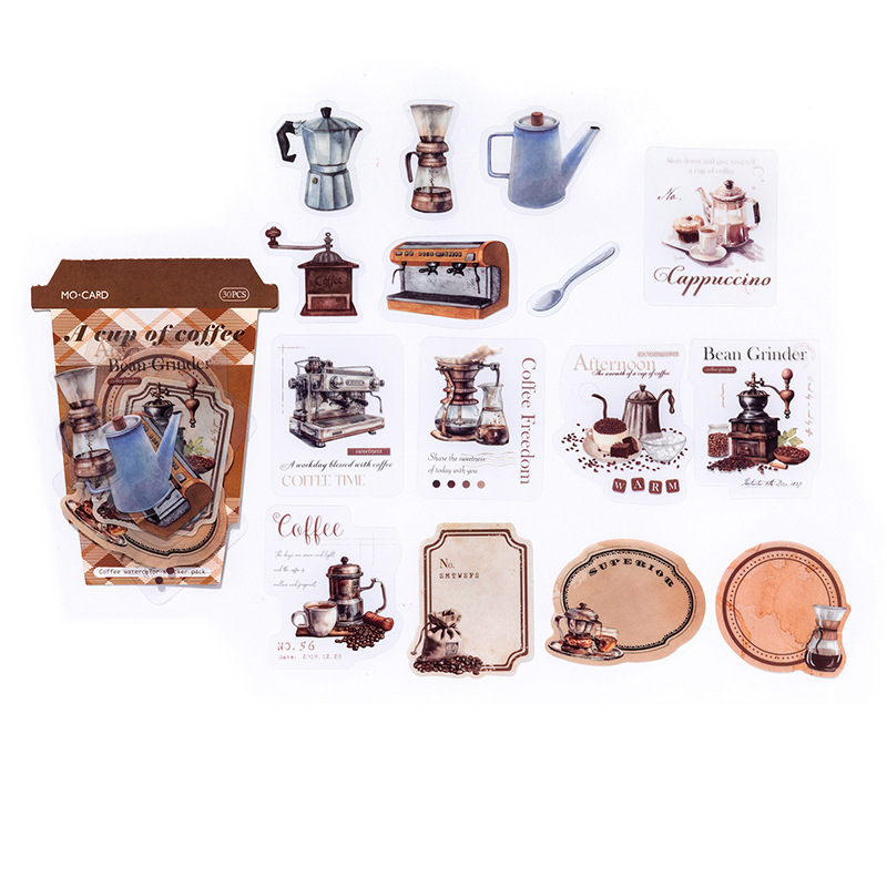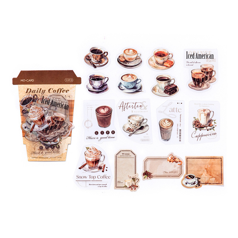 Mo Mo 커피 한 잔 시간 시리즈 PET 스티커 팩 30 수채화 핸드북 DIY 장식 콜라주 6 스타일