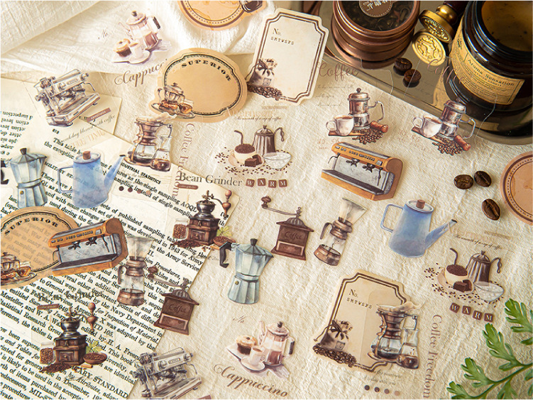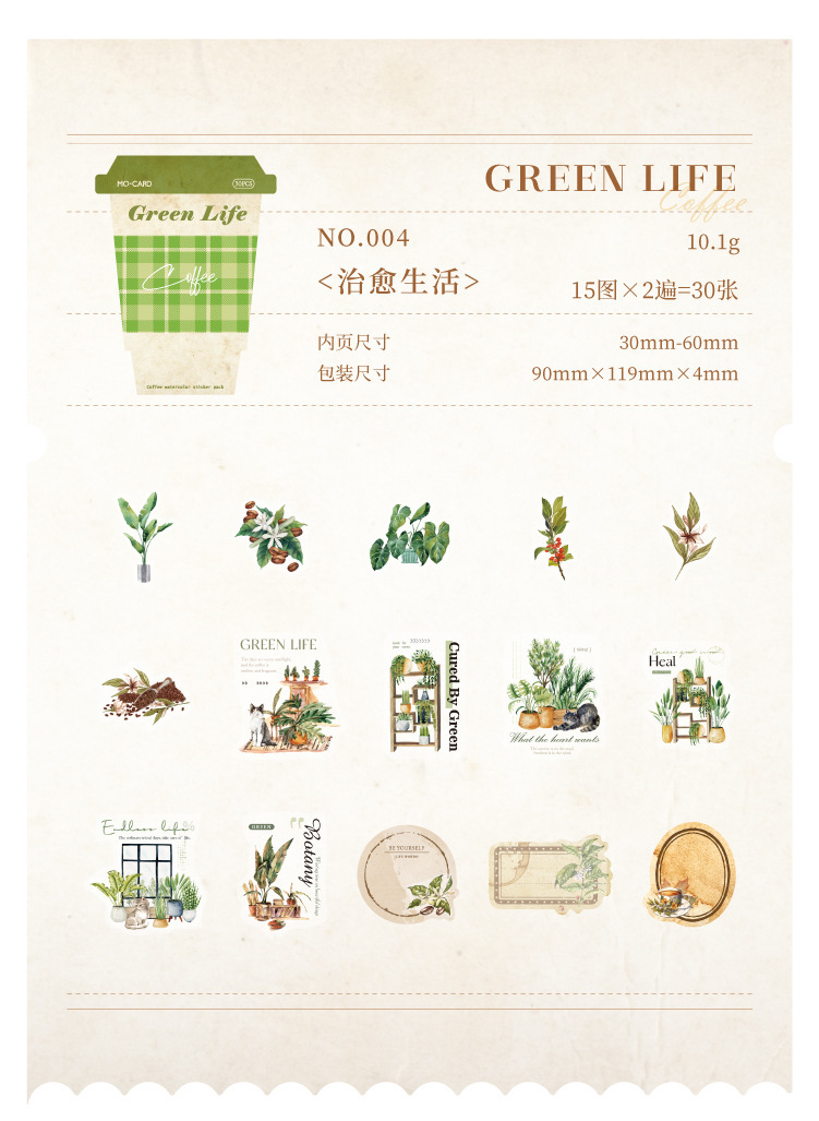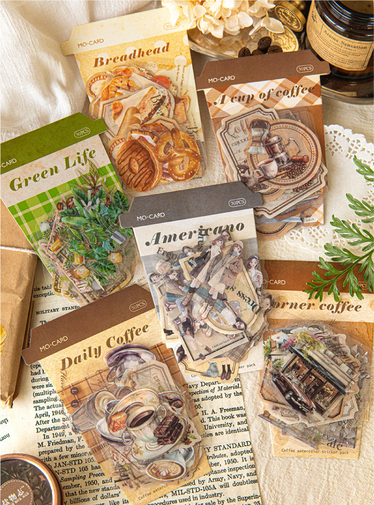 Mo Mo 커피 한 잔 시간 시리즈 PET 스티커 팩 30 수채화 핸드북 DIY 장식 콜라주 6 스타일스토어 가기
