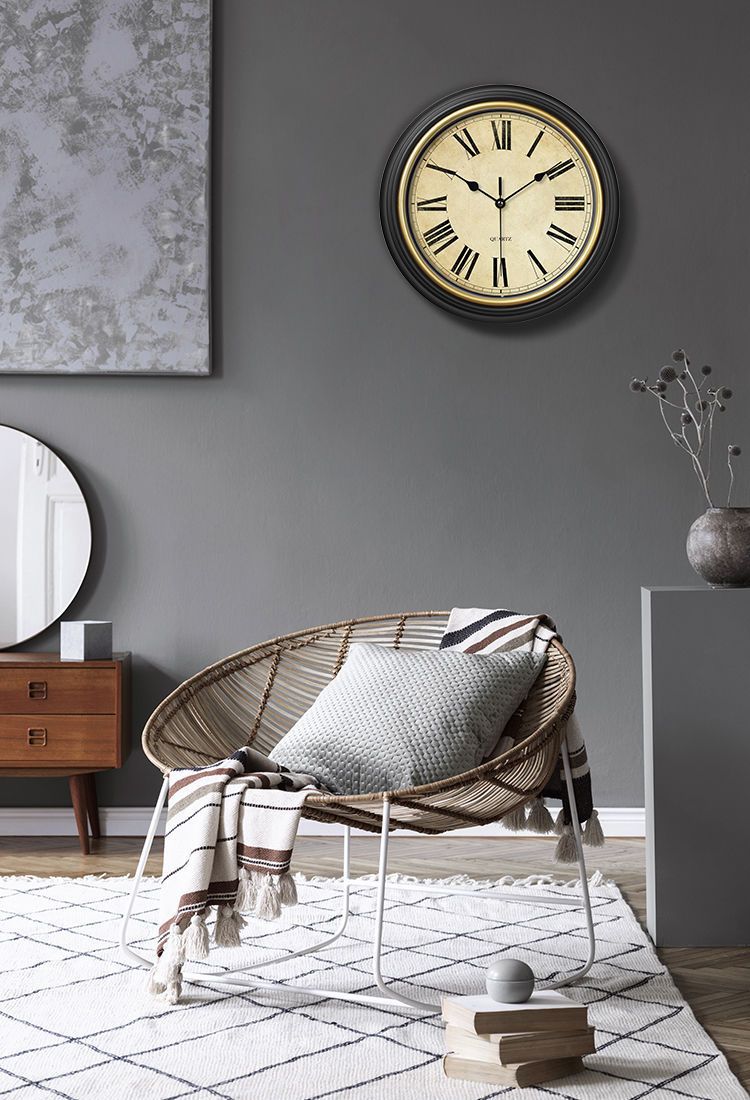 거실 벽걸이용 유럽식 시계, 가정용 미국식 복고풍 벽시계, 무음 시계 장식, 펀치 없는 석영 시계