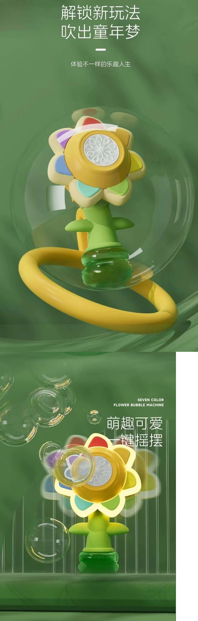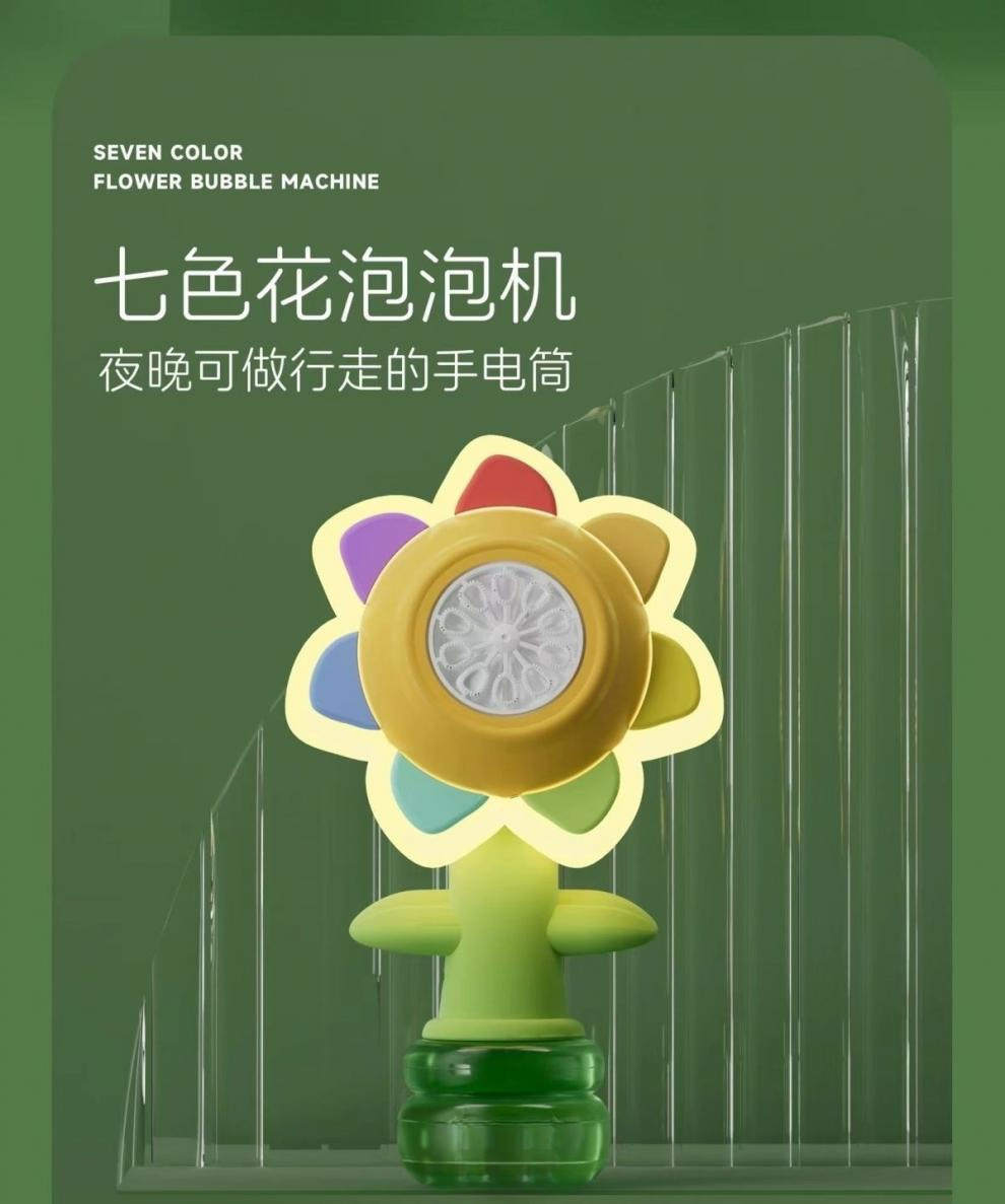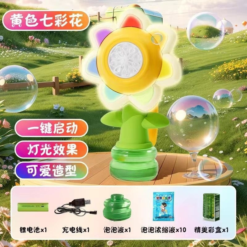 새로운 어린이 7 색 해바라기 거품 장난감 완전 자동 거품 부는 휴대용 스윙 충전 소녀 조명