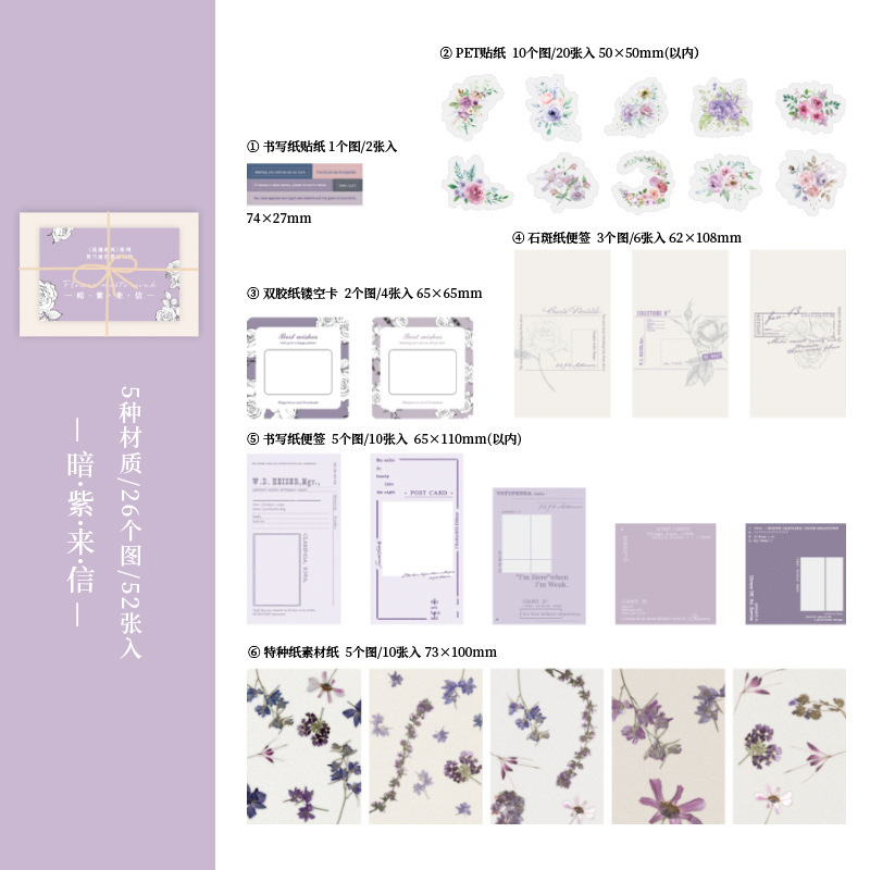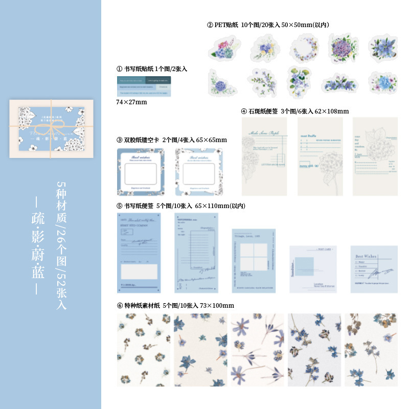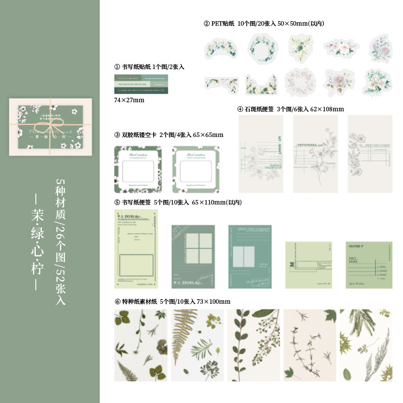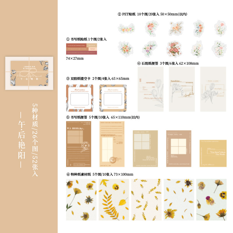 Huayu 일본식 시리즈 다중 재료 패키지 아름다운 하루 INS 꽃 핸드북 소재 장식 스티커 52개스토어 가기
