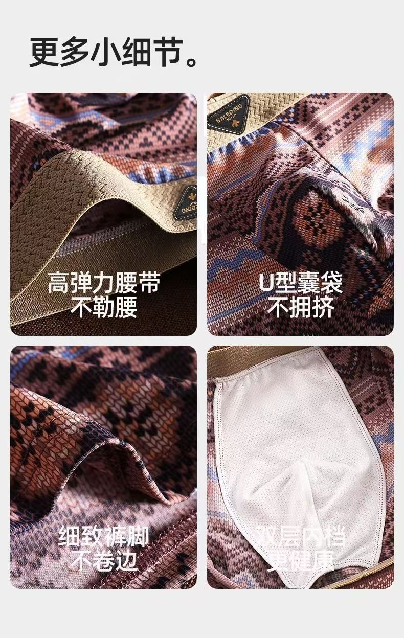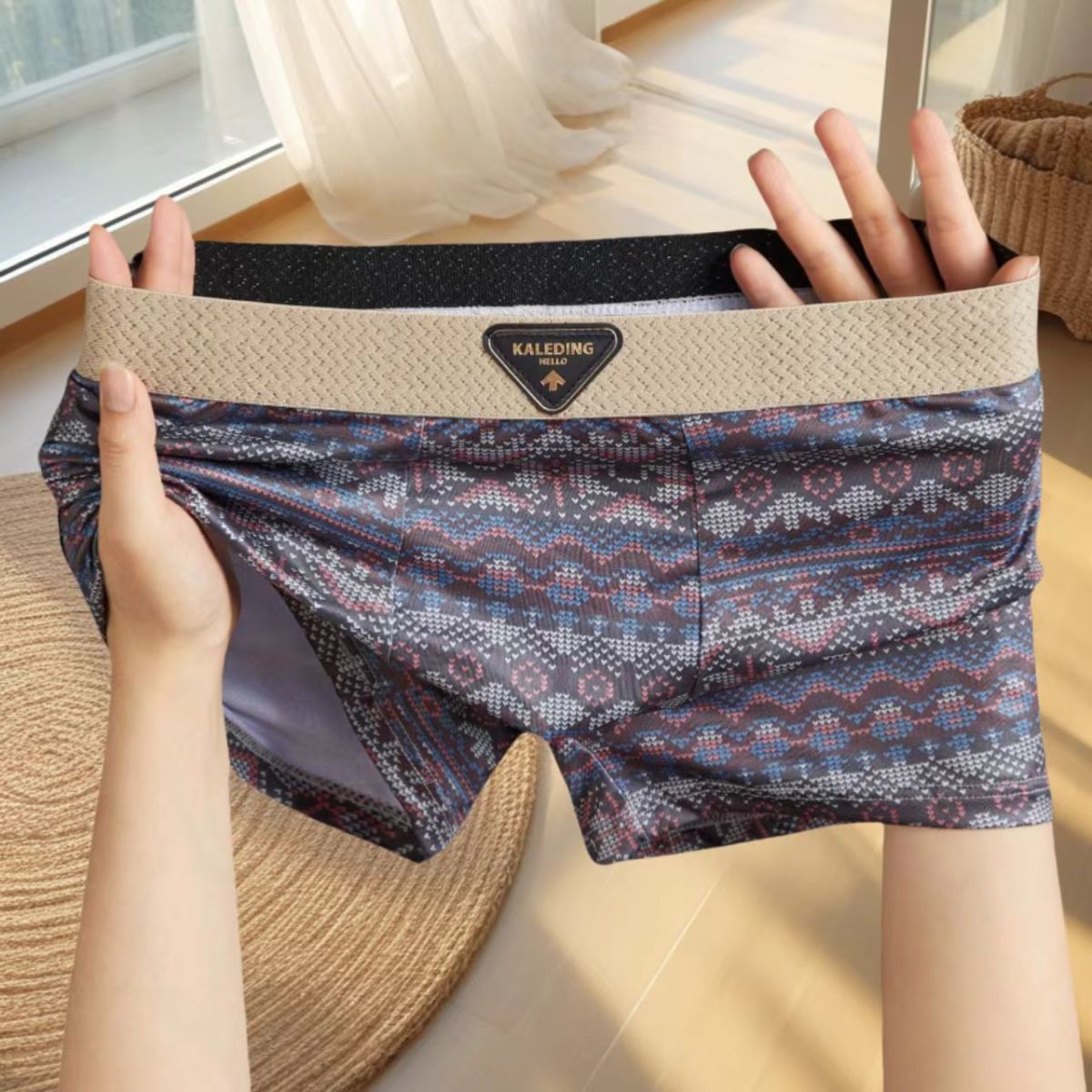 에스닉 스타일 남성 속옷, 아메리칸 라이트 럭셔리 스타일 복서 팬티, 청소년 편안하고 통기성이 좋은 미드 웨이스트 복서 팬티, 트렌디하고 패셔너블함