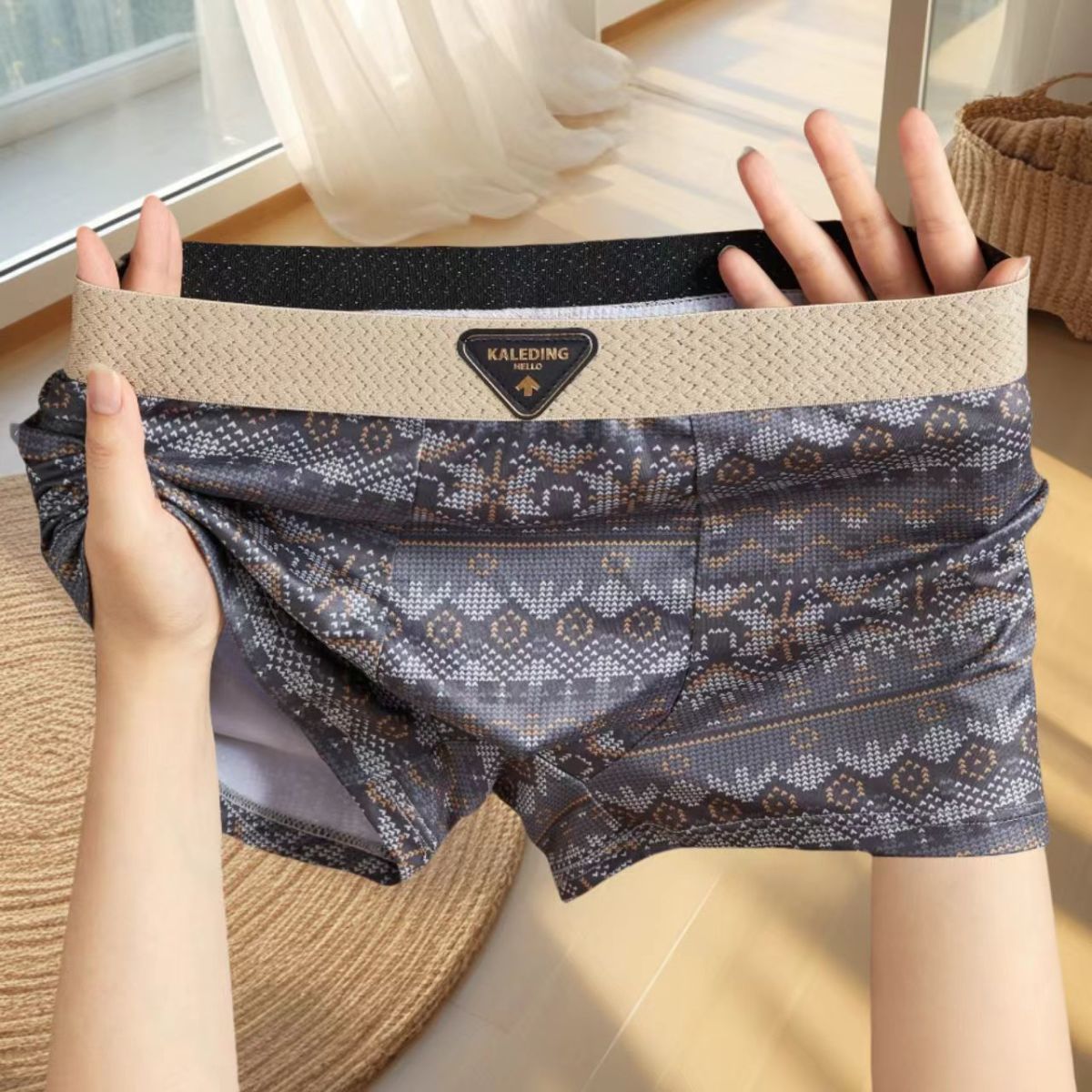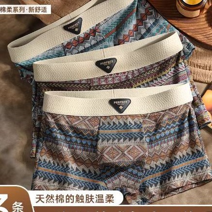 에스닉 스타일 남성 속옷, 아메리칸 라이트 럭셔리 스타일 복서 팬티, 청소년 편안하고 통기성이 좋은 미드 웨이스트 복서 팬티, 트렌디하고 패셔너블함스토어 가기