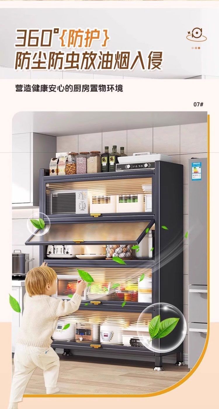 주방 캐비닛 강철 다층 보관 캐비닛 밥솥 전자 레인지 보관 랙 가정용 방진 캐비닛 찬장 보관 캐비닛스토어 가기