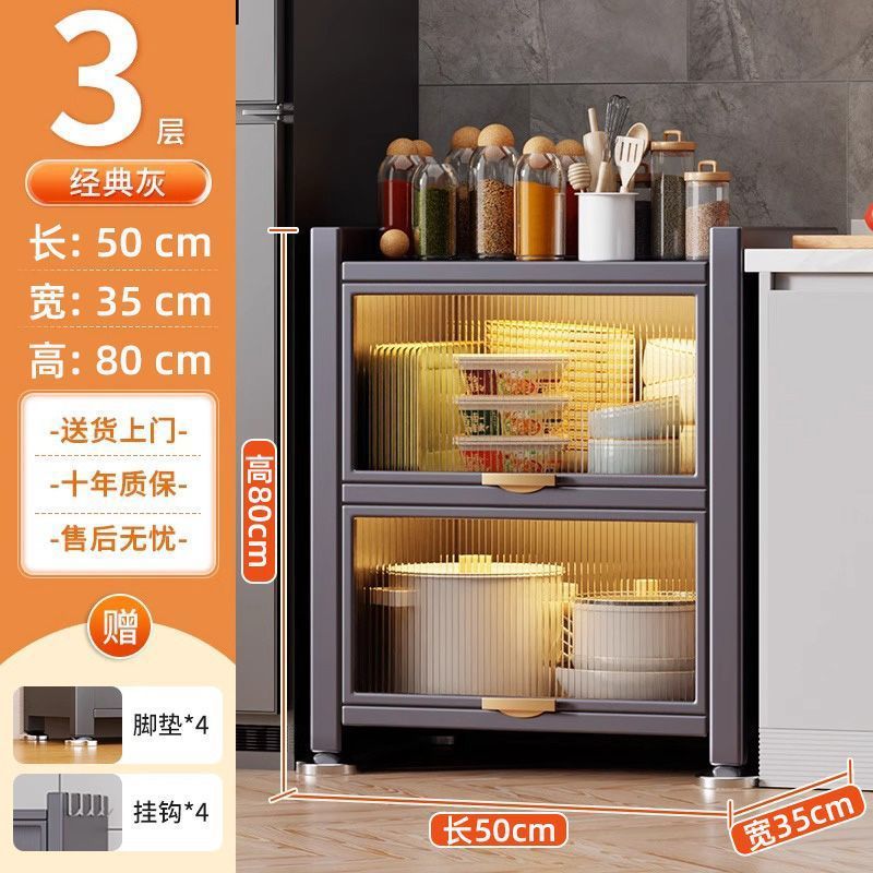 주방 캐비닛 강철 다층 보관 캐비닛 밥솥 전자 레인지 보관 랙 가정용 방진 캐비닛 찬장 보관 캐비닛
