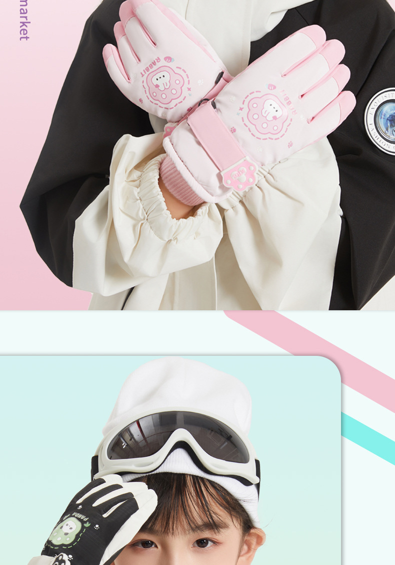 어린이 스키 장갑 두꺼운 따뜻한 야외 승마 방풍 및 방수 다섯 손가락 장갑 창조적 인 만화 장갑 내마모성스토어 가기