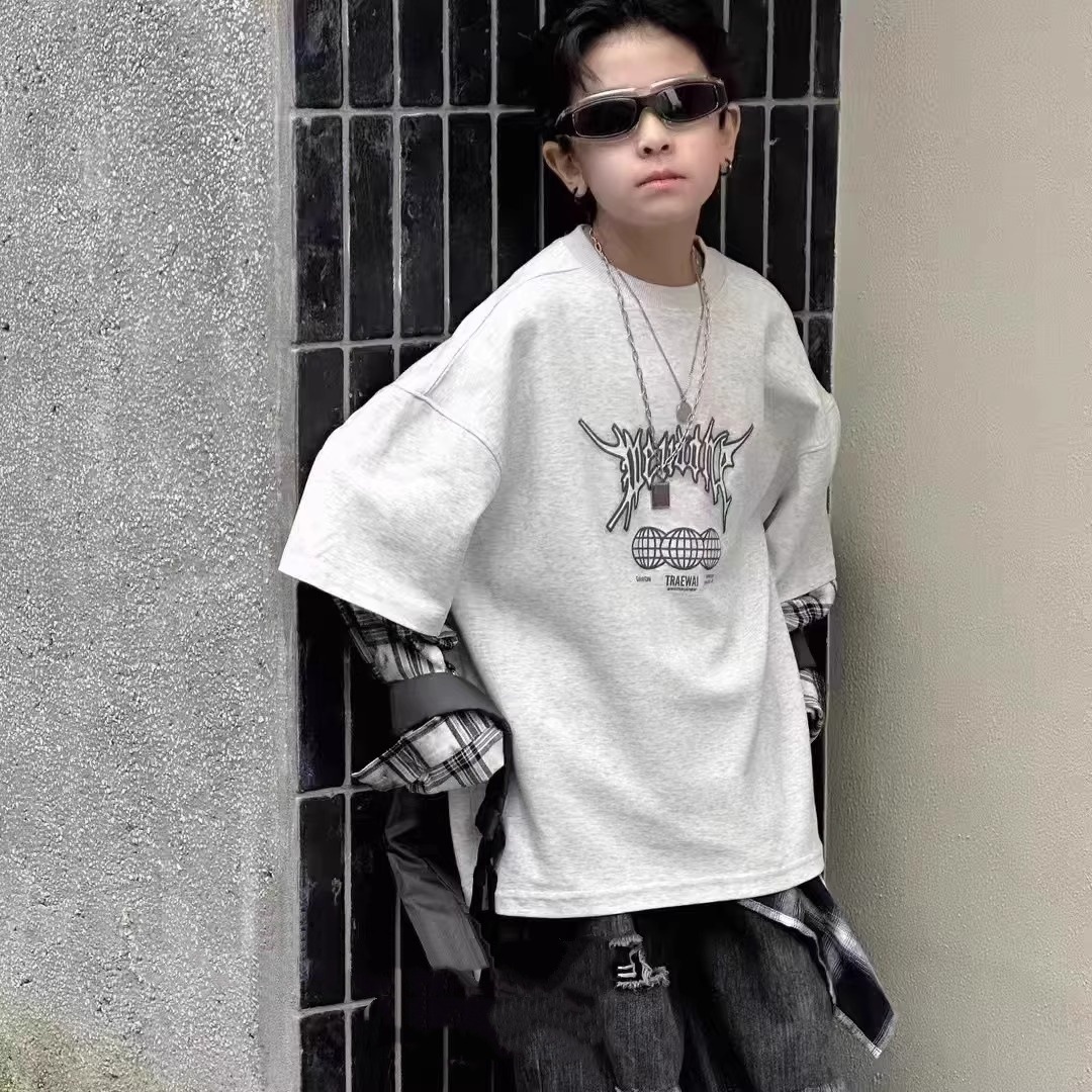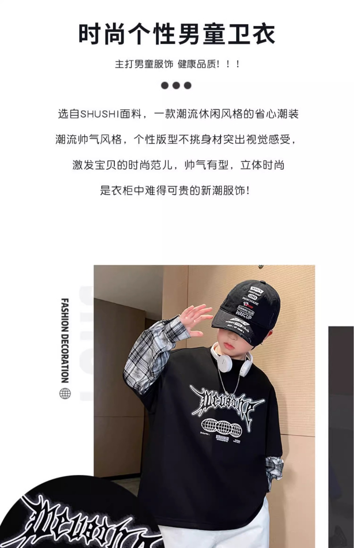 소년 가을 긴팔 티셔츠 봄, 가을 어린이 가짜 투피스 힙합 의류 중대형 어린이 소년 가을 탑 유행 t스토어 가기