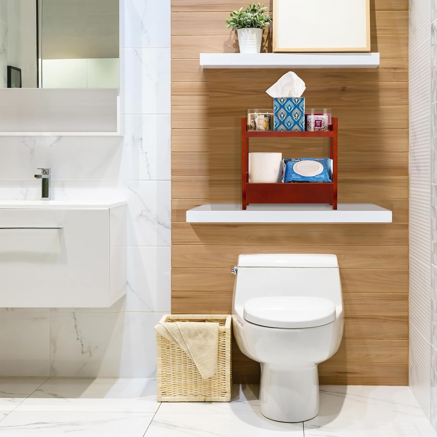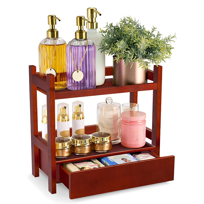 대나무 욕실 카운터 주최자 숨겨진 서랍이있는 다층 선반 드레싱 테이블 말차 스테이션 욕실 싱크대 나무 선반