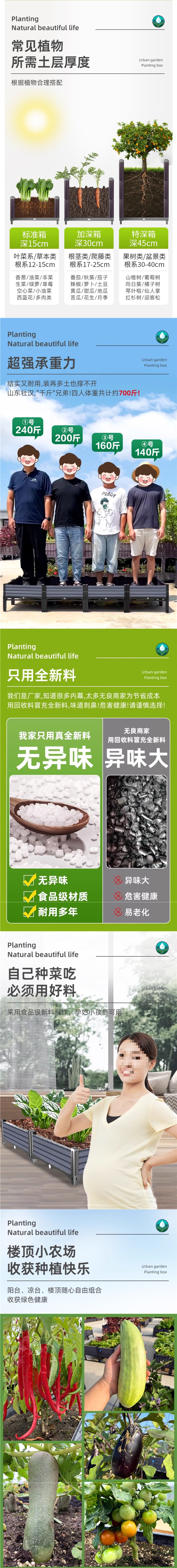 옥상 야채 상자, 발코니 초대형 심기 상자, 야채 화분, 안뜰 플라스틱 꽃 상자, 직사각형 야외