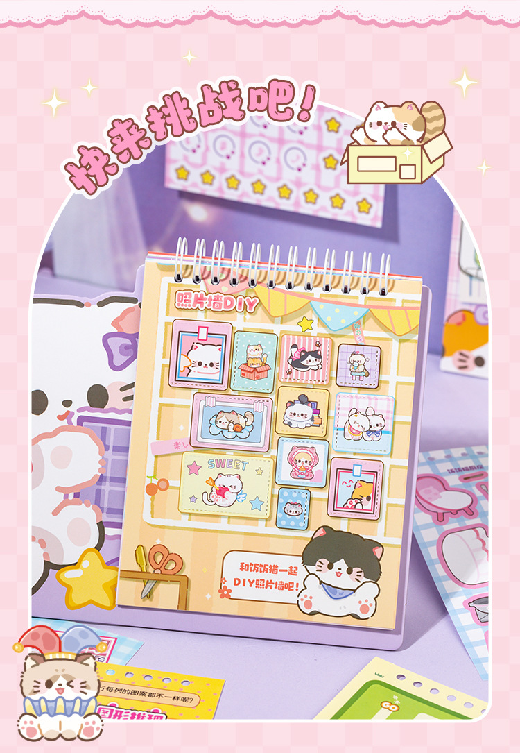 Yuxian 어린이 스티커 책, 고양이 귀여운 전투, 귀여운 핸드북, 창의적인 놀이, DIY 장면, 조용한 책