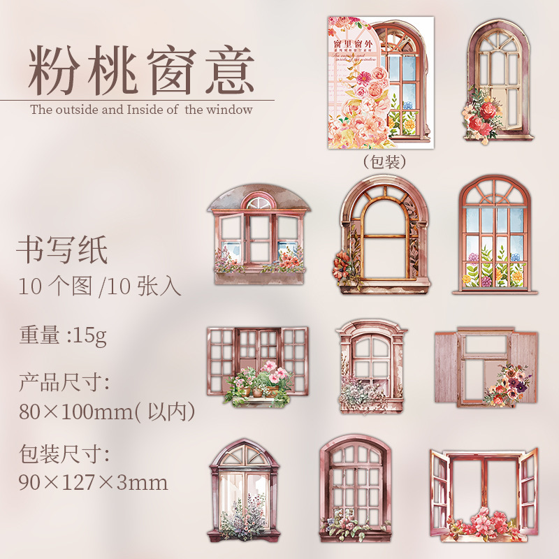 창문 시리즈 토마토 소스 소녀 스티커 창틀 중공 핸드북 장식 재료 15개 6가지 스타일