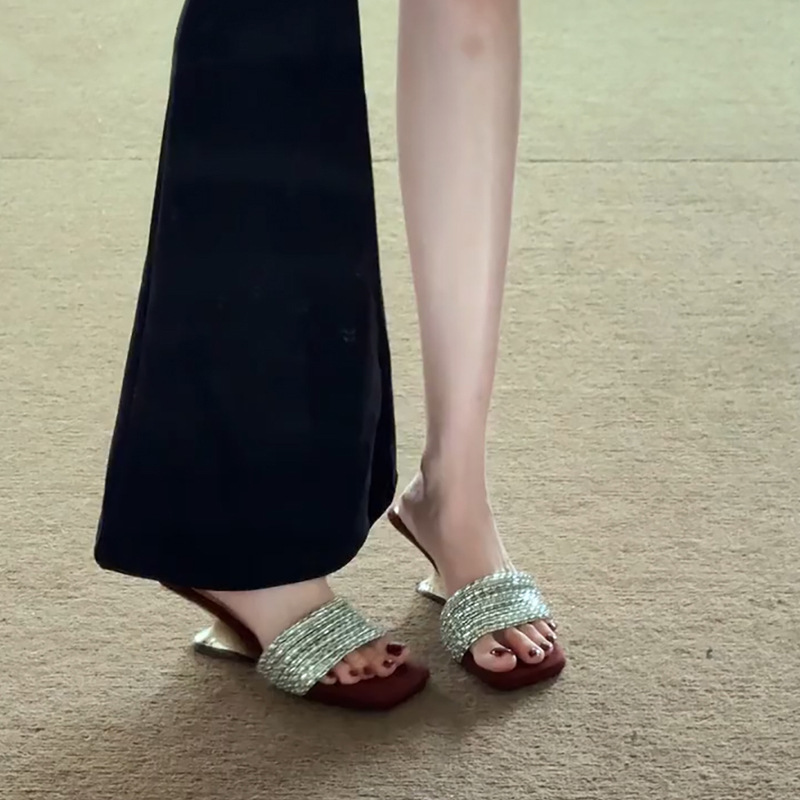 2025년 여성을 위한 슈퍼 핫 아우터 슬리퍼, 다재다능하고 피곤하지 않은 발, 라인스톤 스퀘어 토 오픈 토 특별한 모양의 웨지 샌들